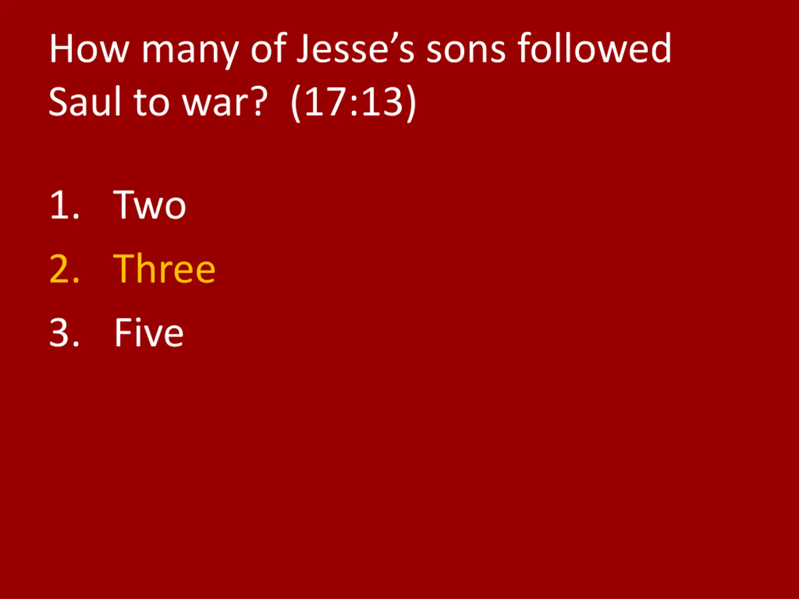How many of Jesses sons followed Saul to war? (17:13) 1. Two 2. Three 3. Five