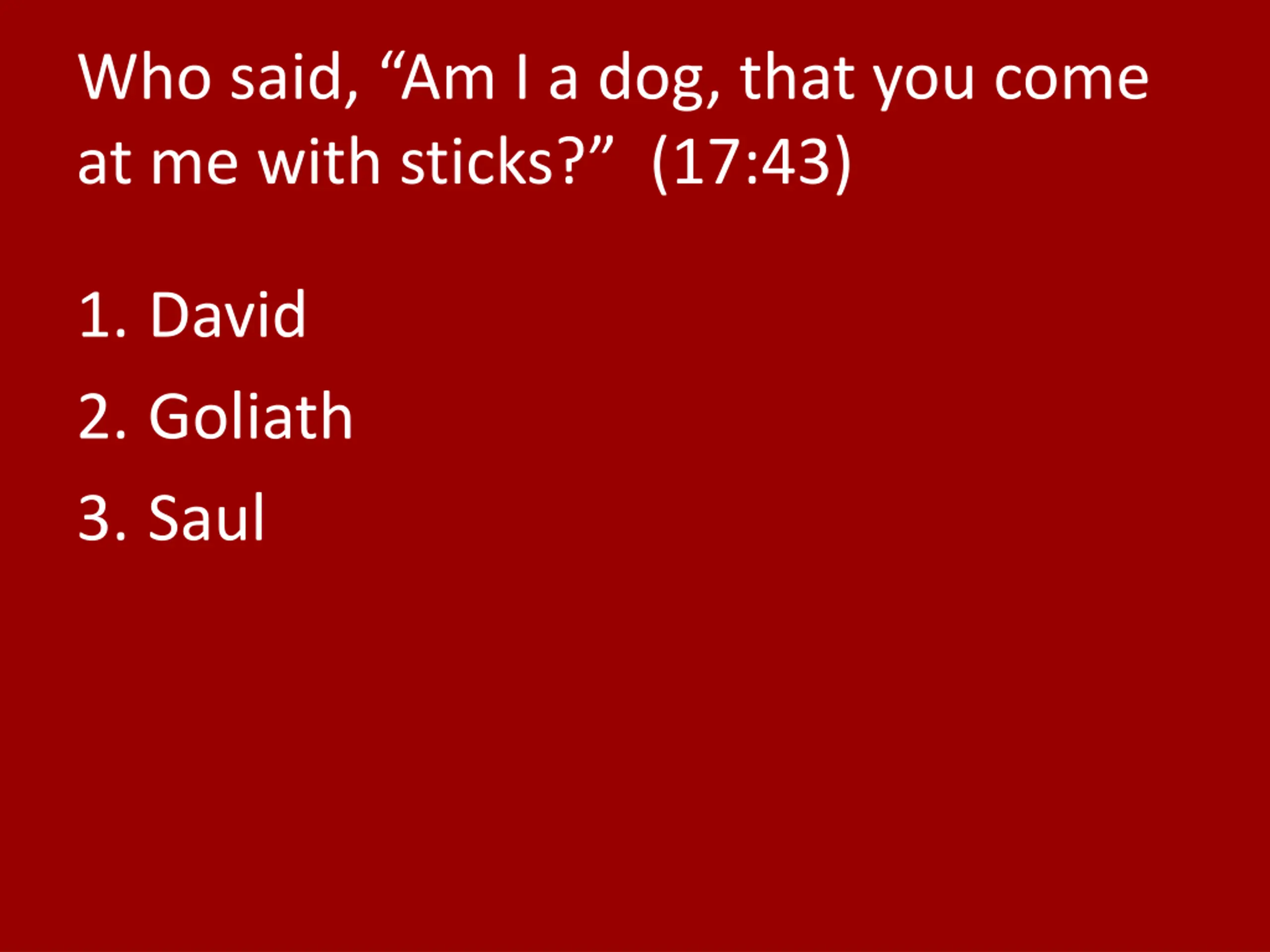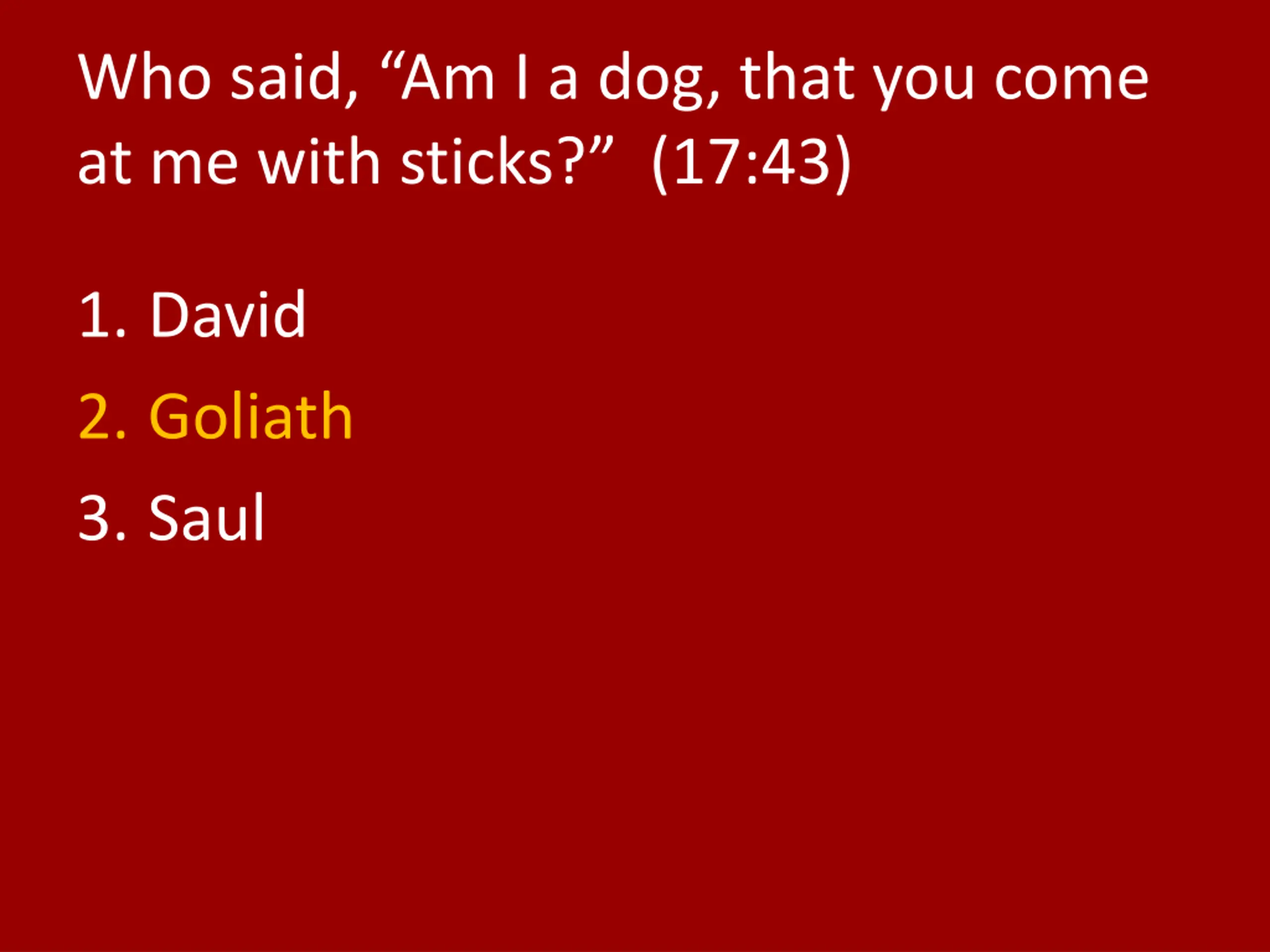 Who said, Am I a dog, that you come at me with sticks? (17:43) 1. David 2. Goliath 3. Saul
