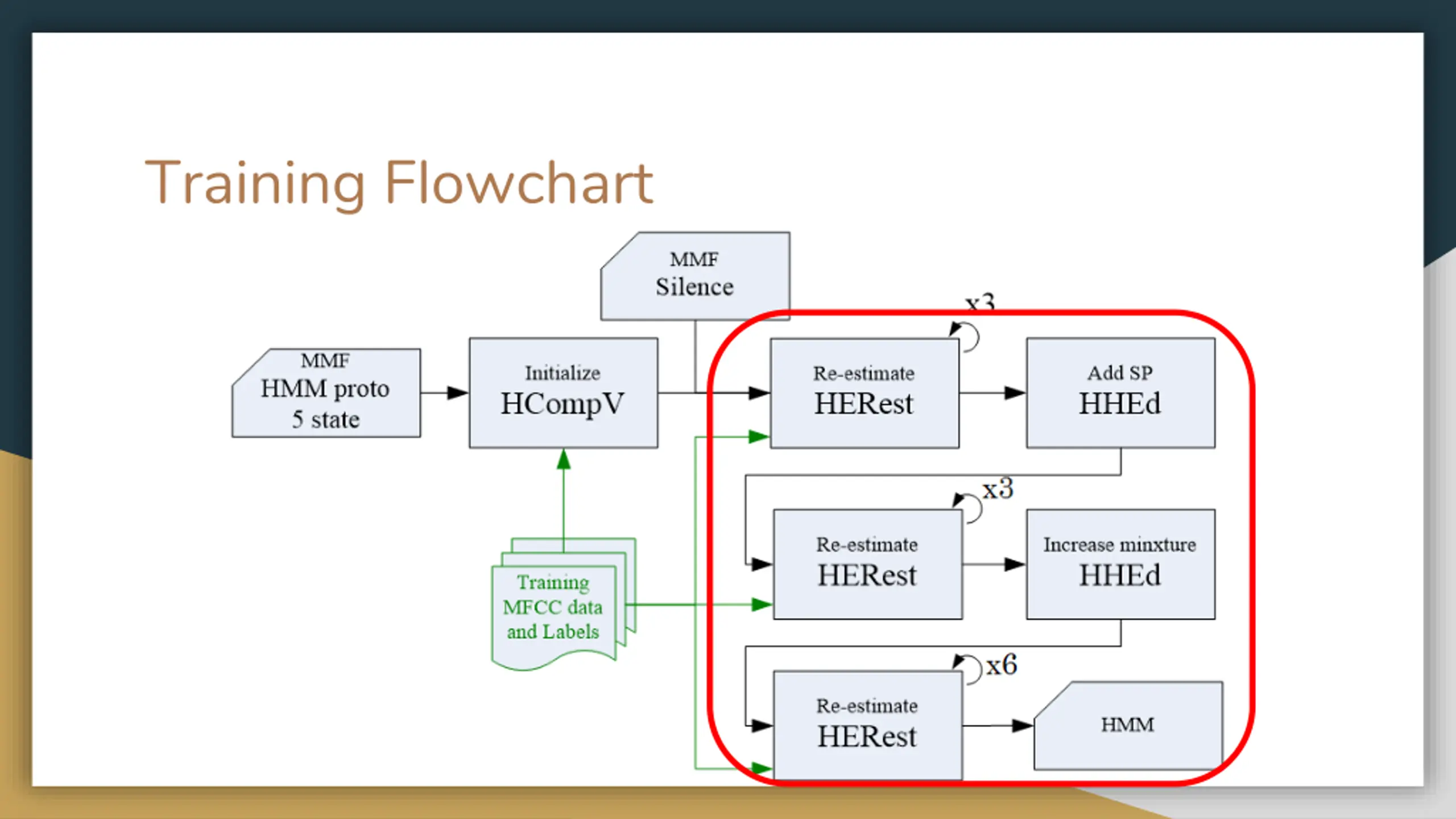 hmm/models Initial HMM bin/macro Produce MMF contains vFloor bin/models_1mixsil add silence HMM hmm/hmmdef