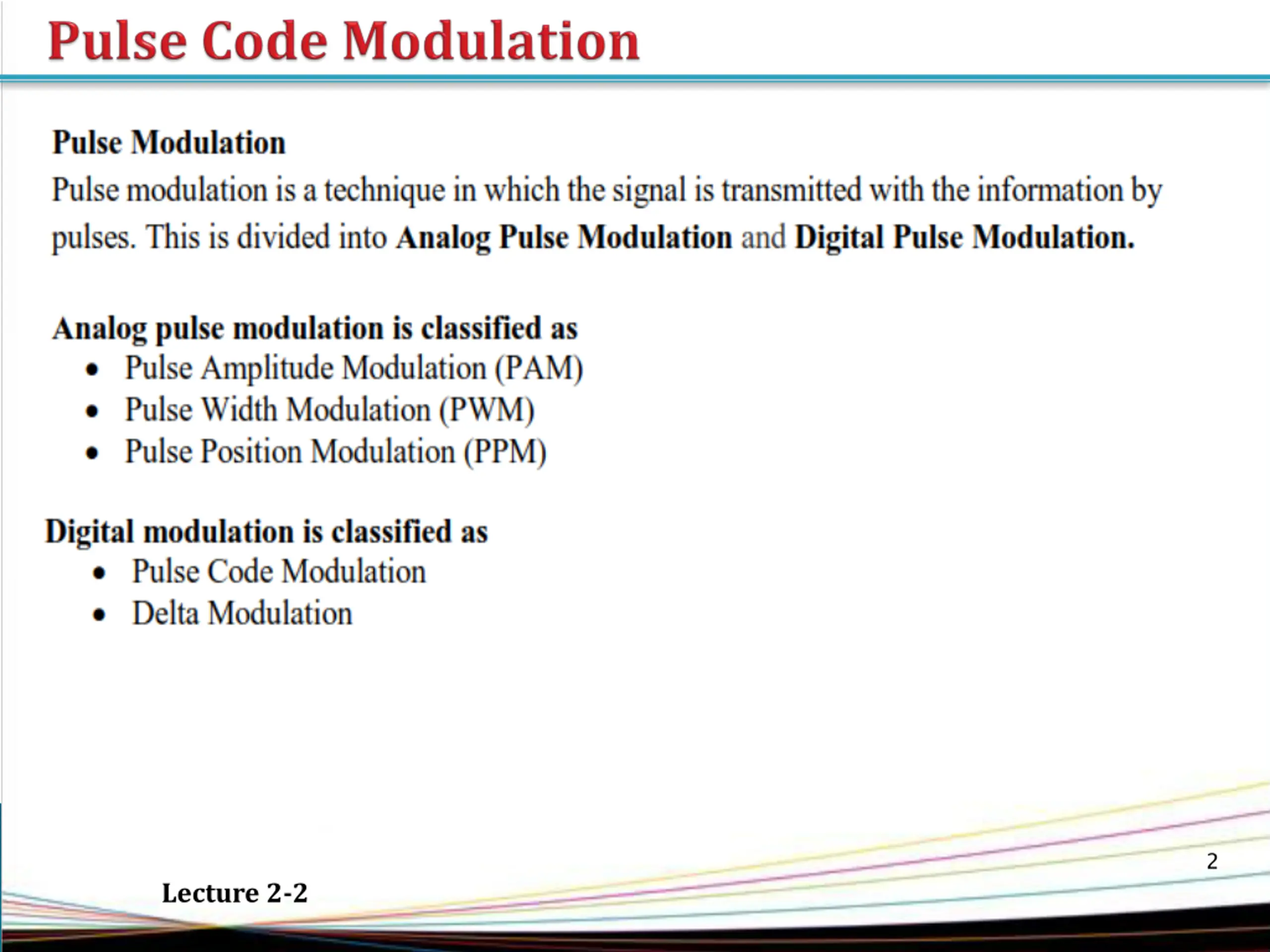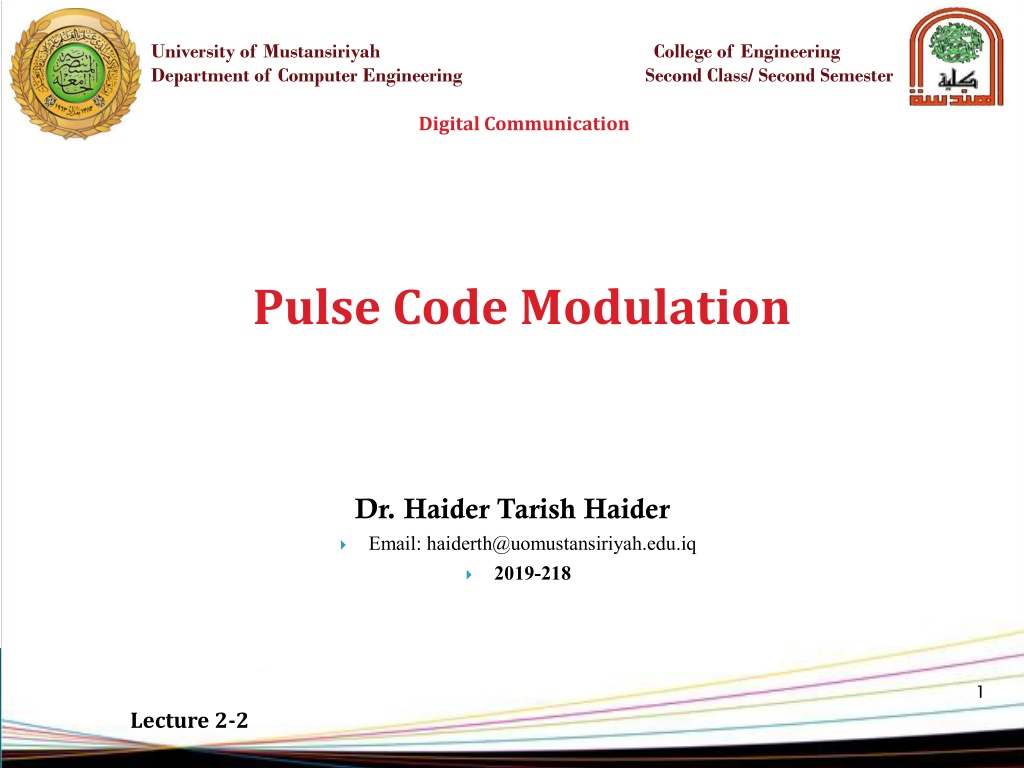University of Mustansiriyah College of Engineering Department of Computer Engineering Second Class/ Second Semester Digital Communication Pulse Code Modulation Dr. Haider Tarish Haider Email: haiderth@uomustansiriyah.edu.iq 2019-218 1 Lecture 2-2