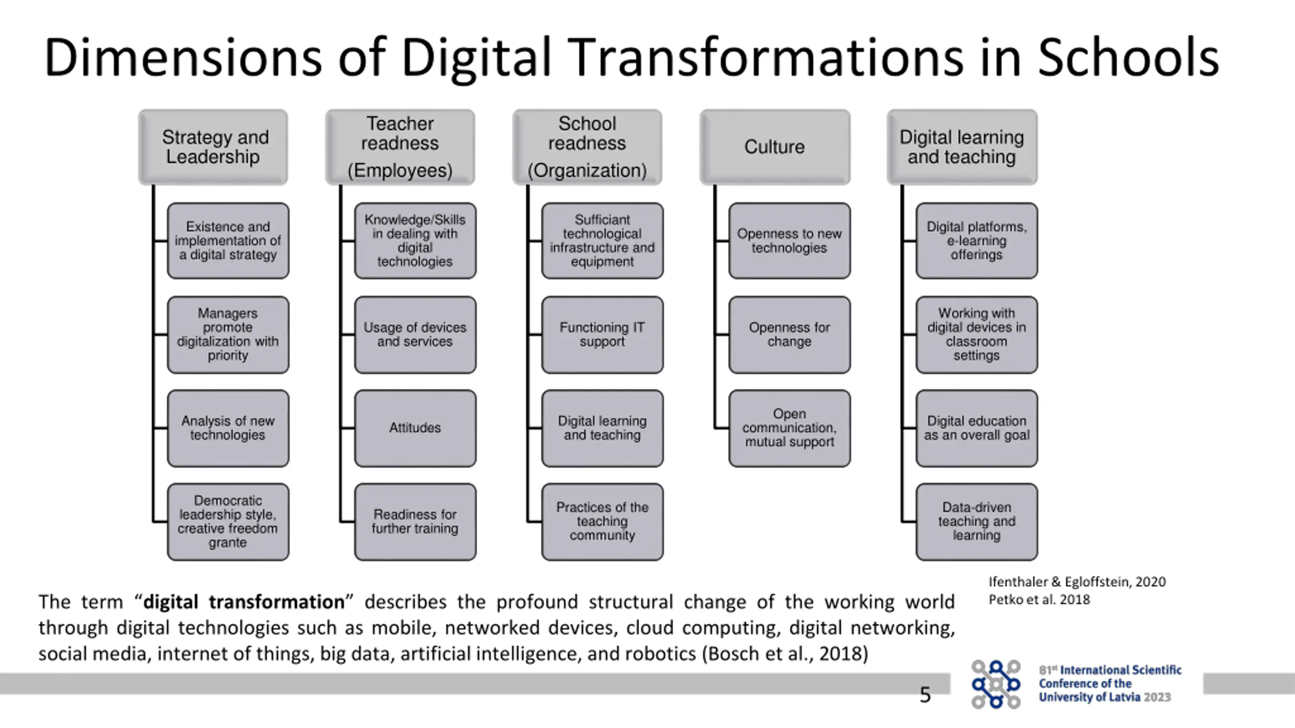 Development of digital school culture for scientific literacy society in science education. Explore dimensions of digital transformations in schools focusing on teacher and school readiness, strategy and leadership, digital learning and teaching, and technological infrastructure.