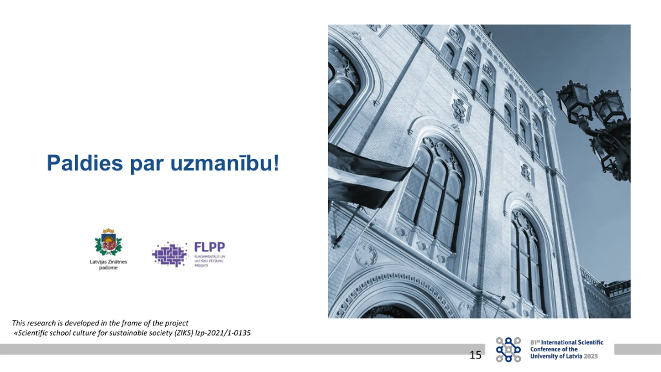 Paldies par uzmanbu! This research is developed in the frame of the project Scientific school culture for sustainable society (ZIKS) lzp-2021/1-0135 15
