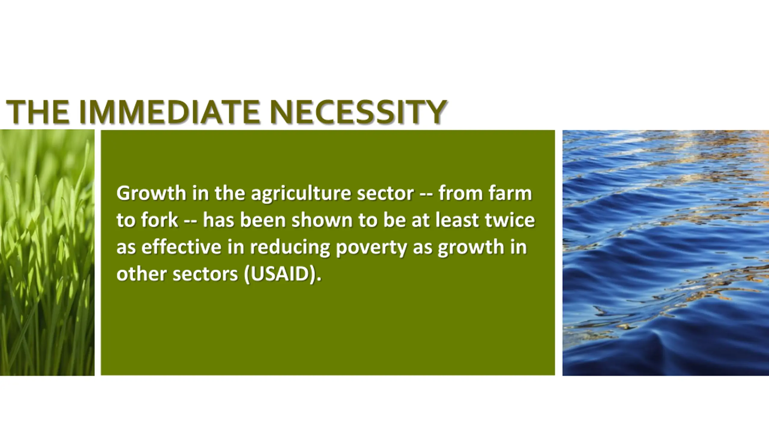 THE IMMEDIATE NECESSITY Growth in the agriculture sector -- from farm to fork -- has been shown to be at least twice as effective in reducing poverty as growth in other sectors (USAID).