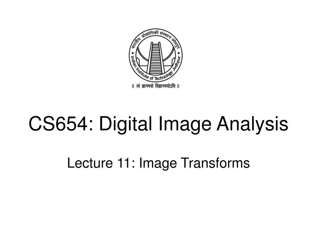 CS654: Digital Image Analysis Lecture 11: Image Transforms