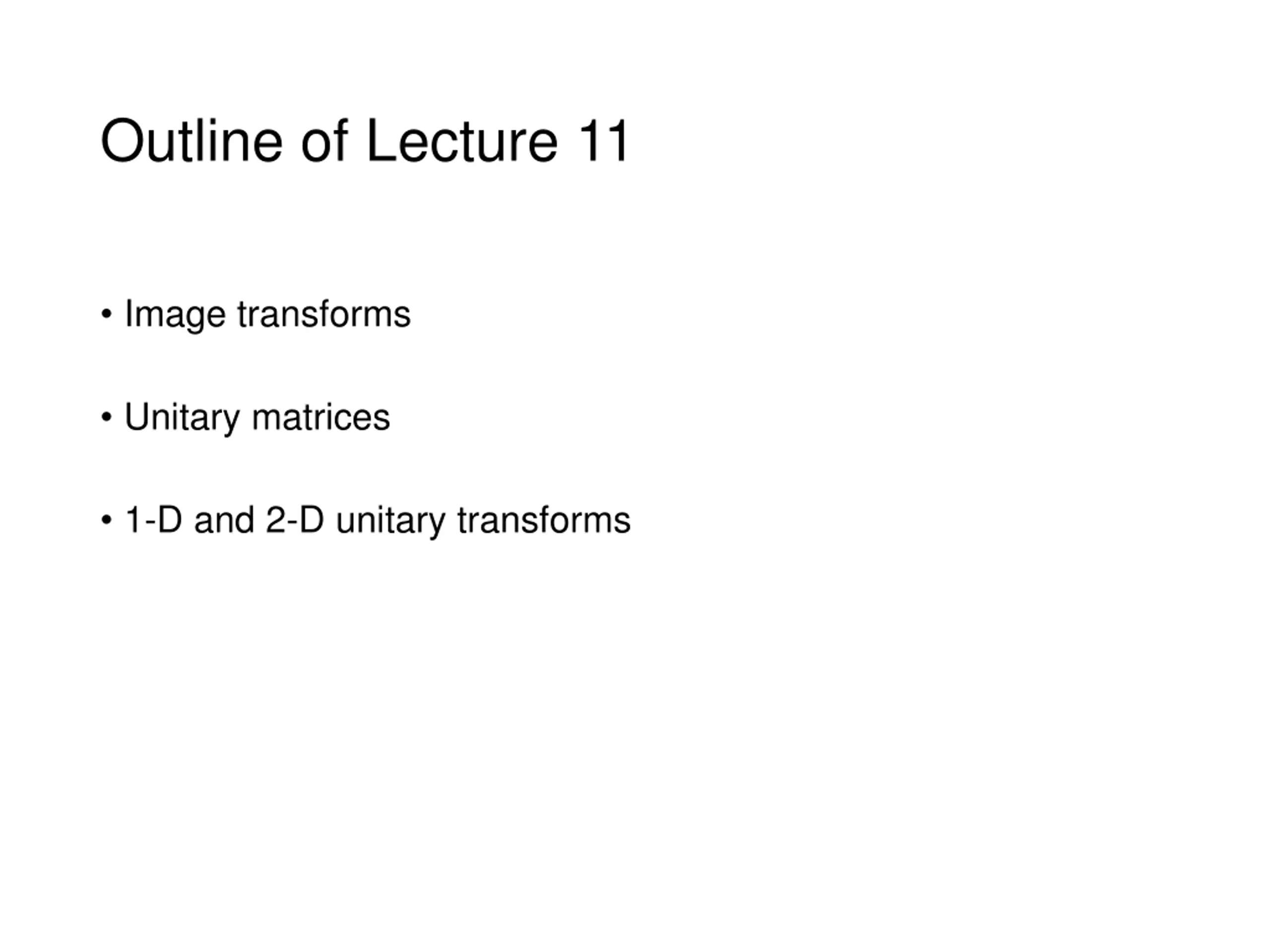 Outline of Lecture 11 Image transforms Unitary matrices 1-D and 2-D unitary transforms