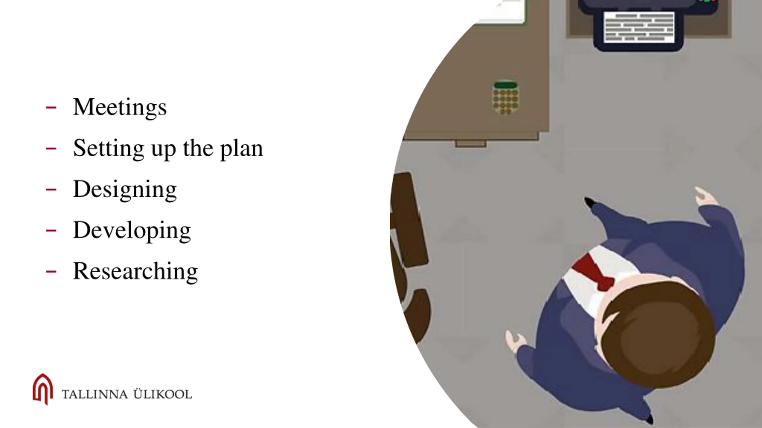 - Meetings - Setting up the plan - Designing - Developing - Researching