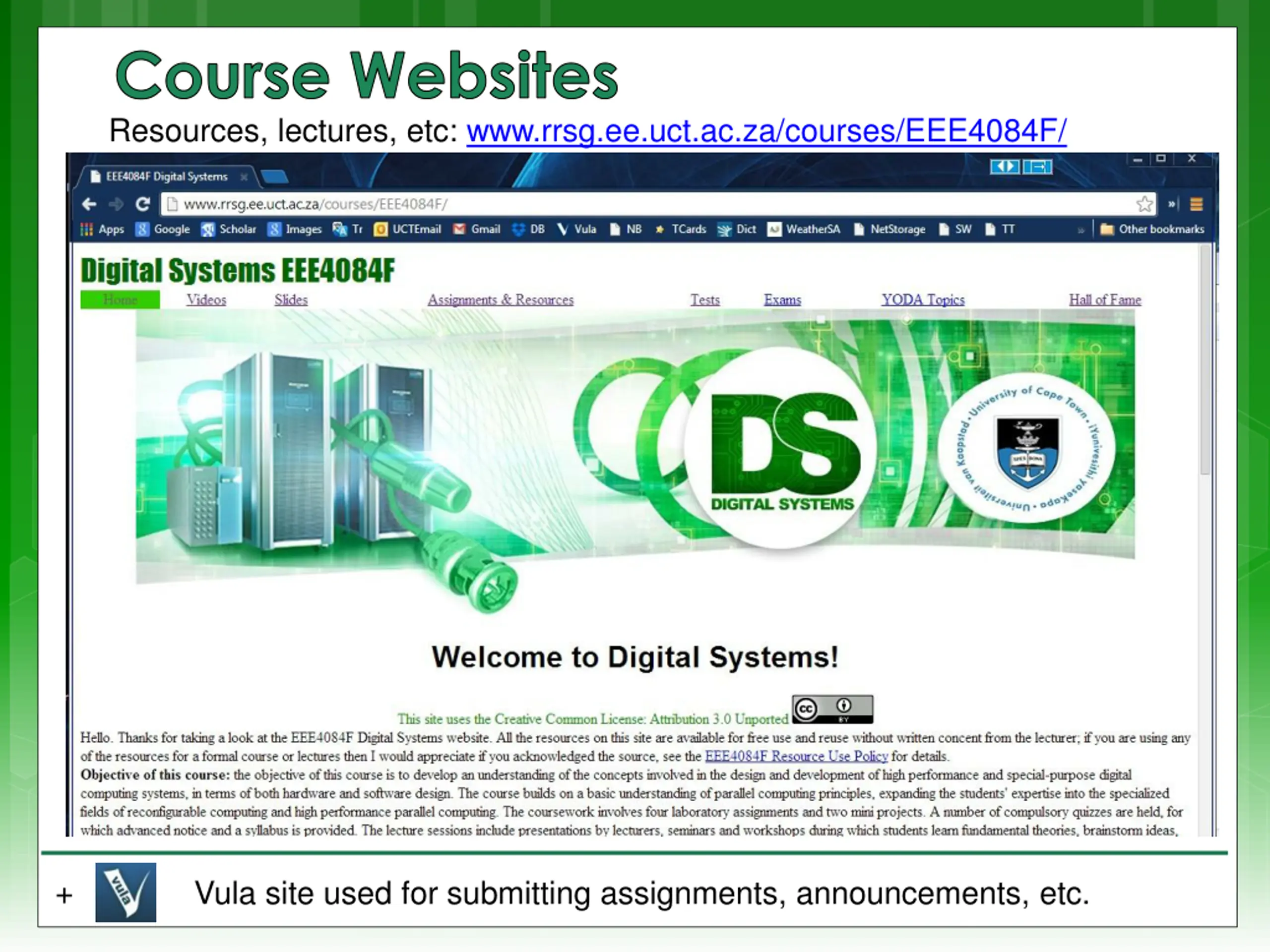 Course Websites Resources, lectures, etc: www.rrsg.ee.uct.ac.za/courses/EEE4084F/ + Vula site used for submitting assignments, announcements, etc.