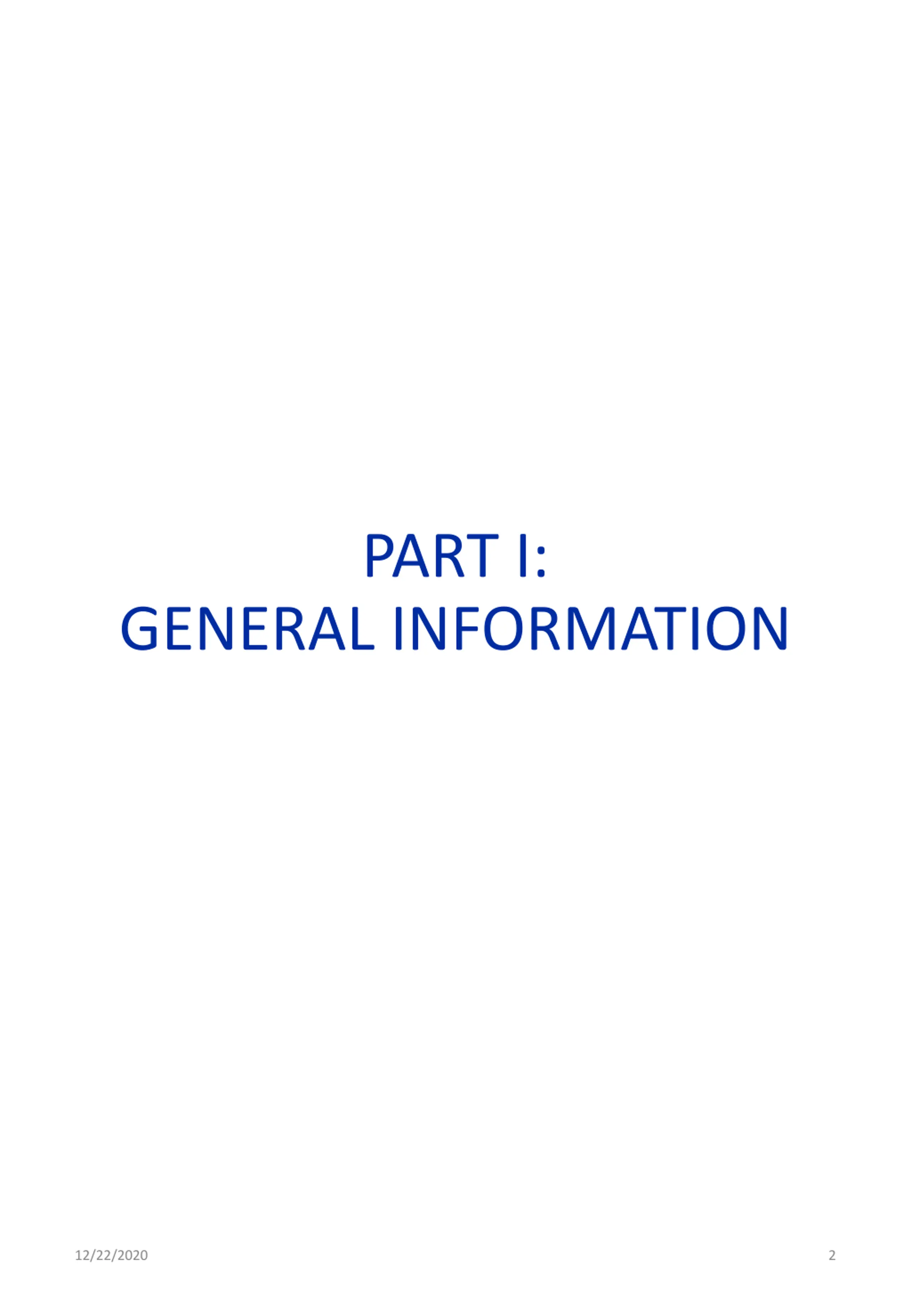 PART I: GENERAL INFORMATION 12/22/2020 2