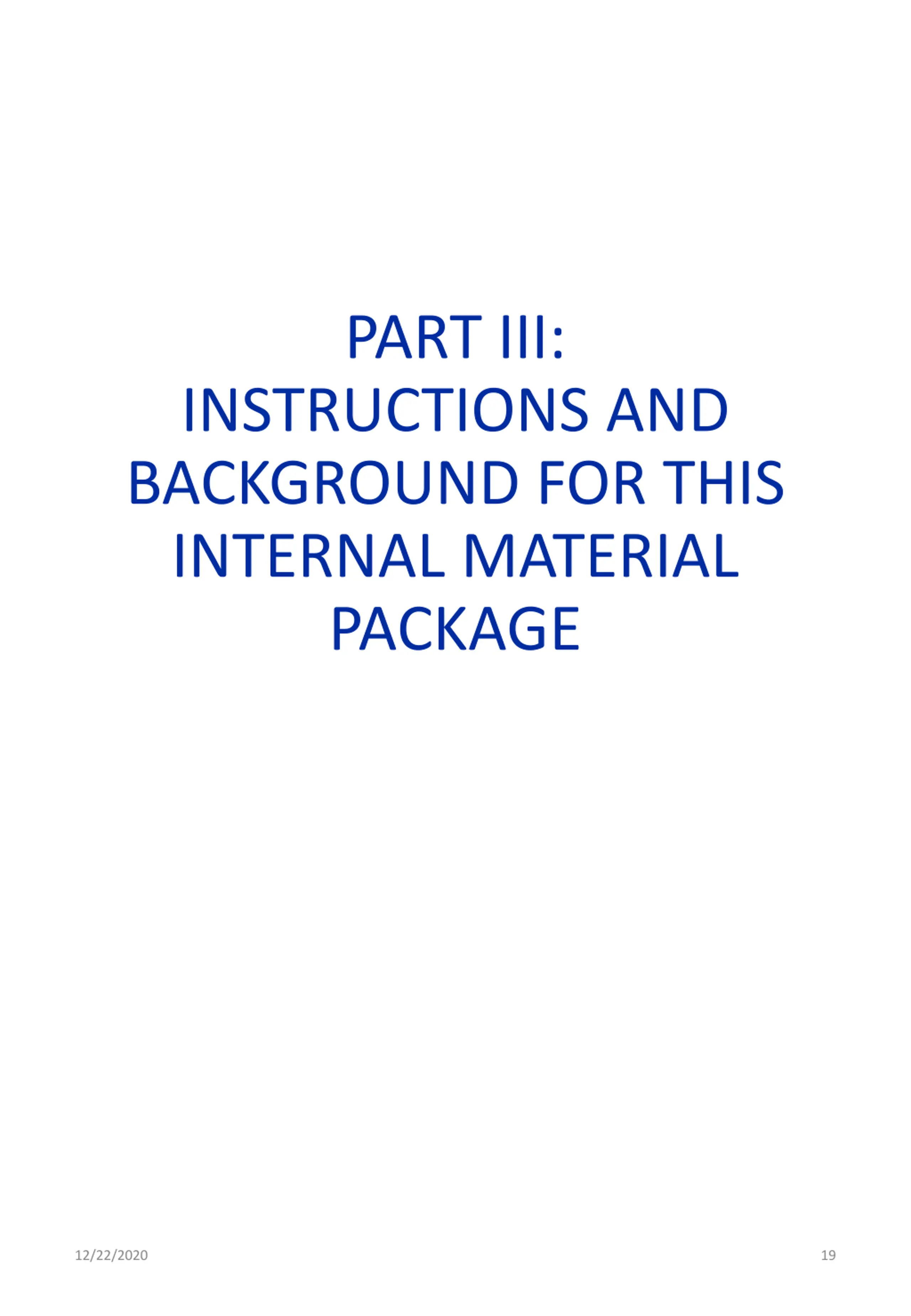 PART III: INSTRUCTIONS AND BACKGROUND FOR THIS INTERNAL MATERIAL PACKAGE 12/22/2020 19