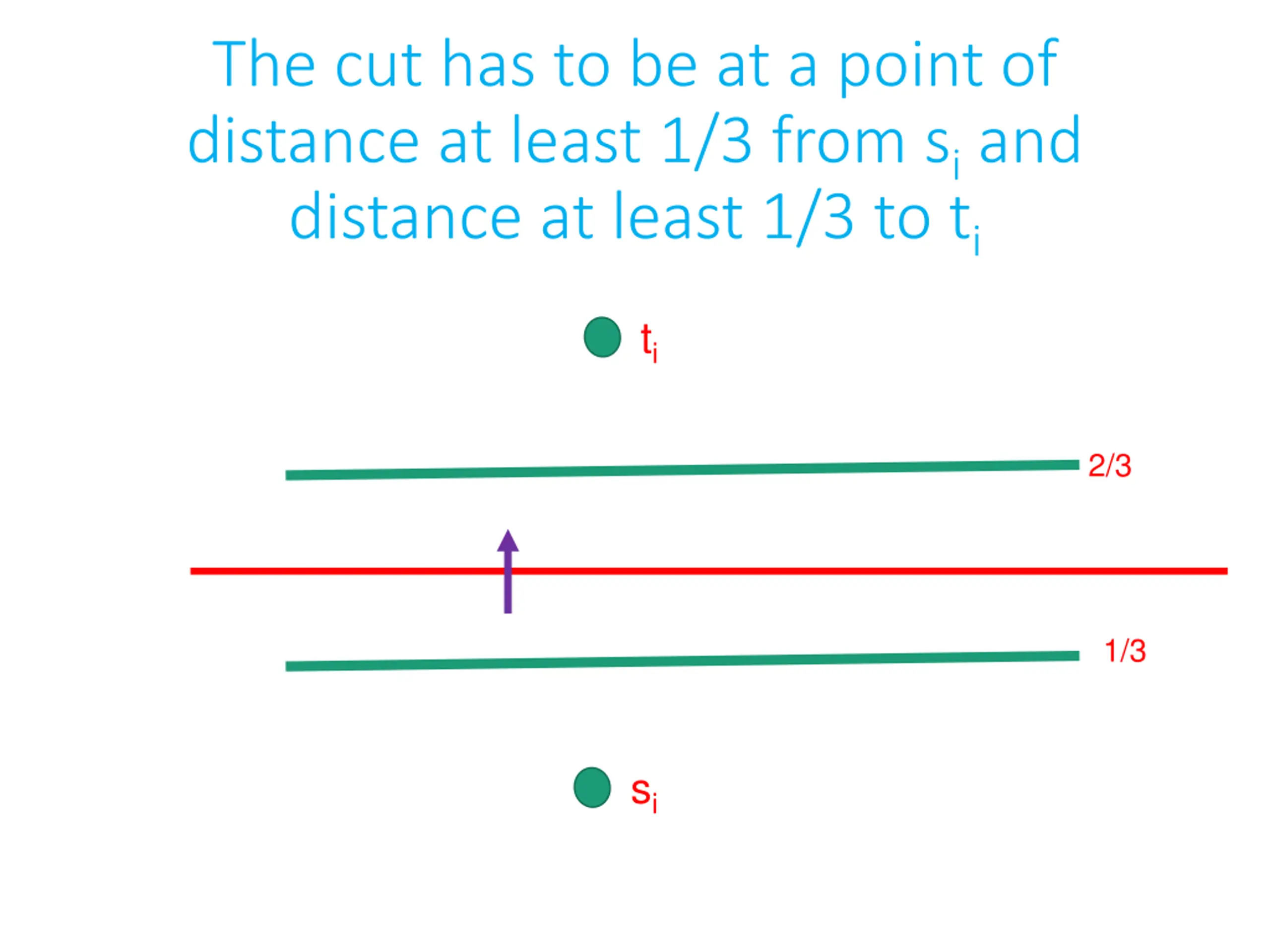 The cut has to be at a point of distance at least 1/3 from siand distance at least 1/3 to ti ti 2/3 1/3 si