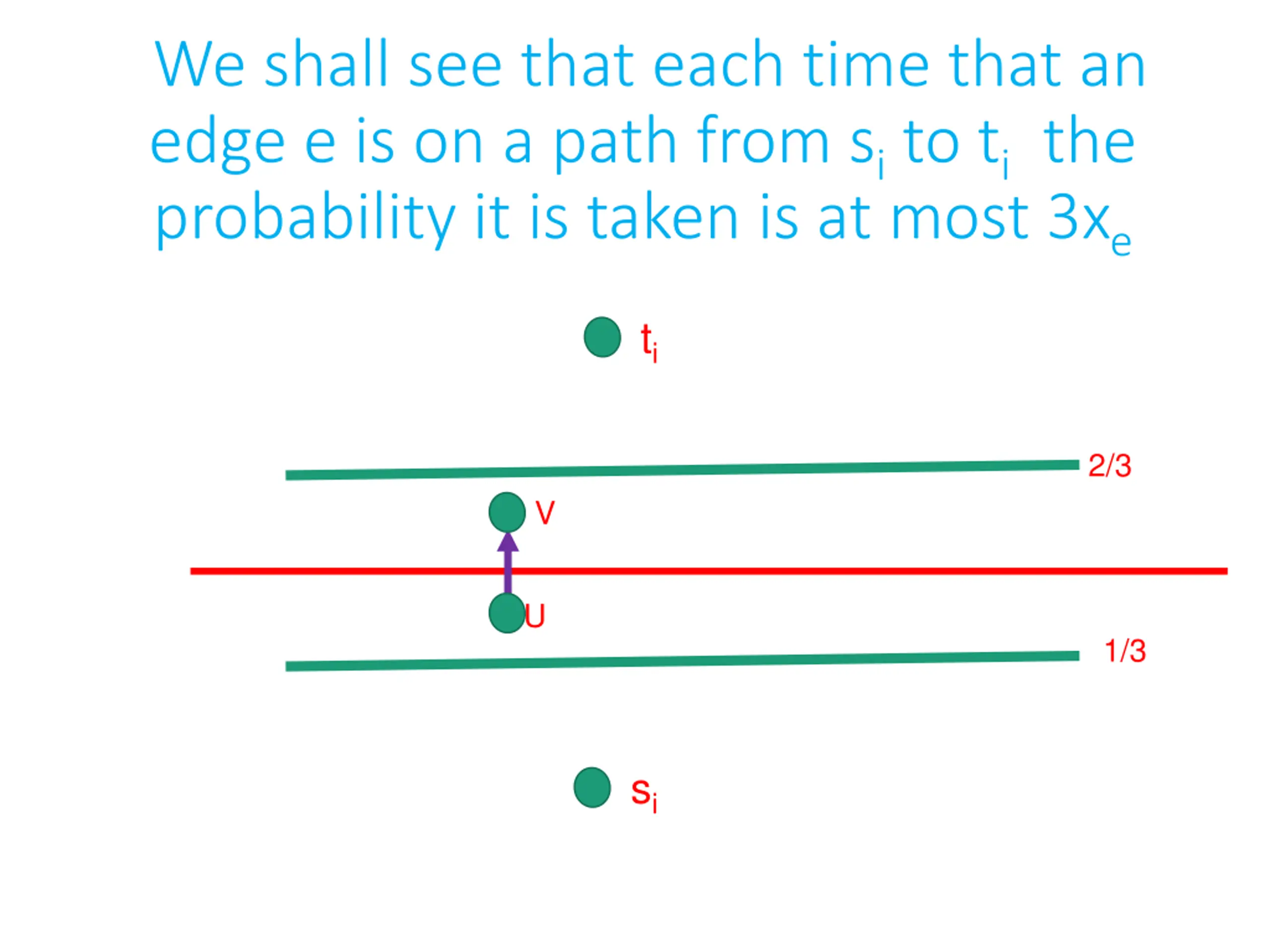 We shall see that each time that an edge e is on a path from sito tithe probability it is taken is at most 3xe ti 2/3 V U 1/3 si