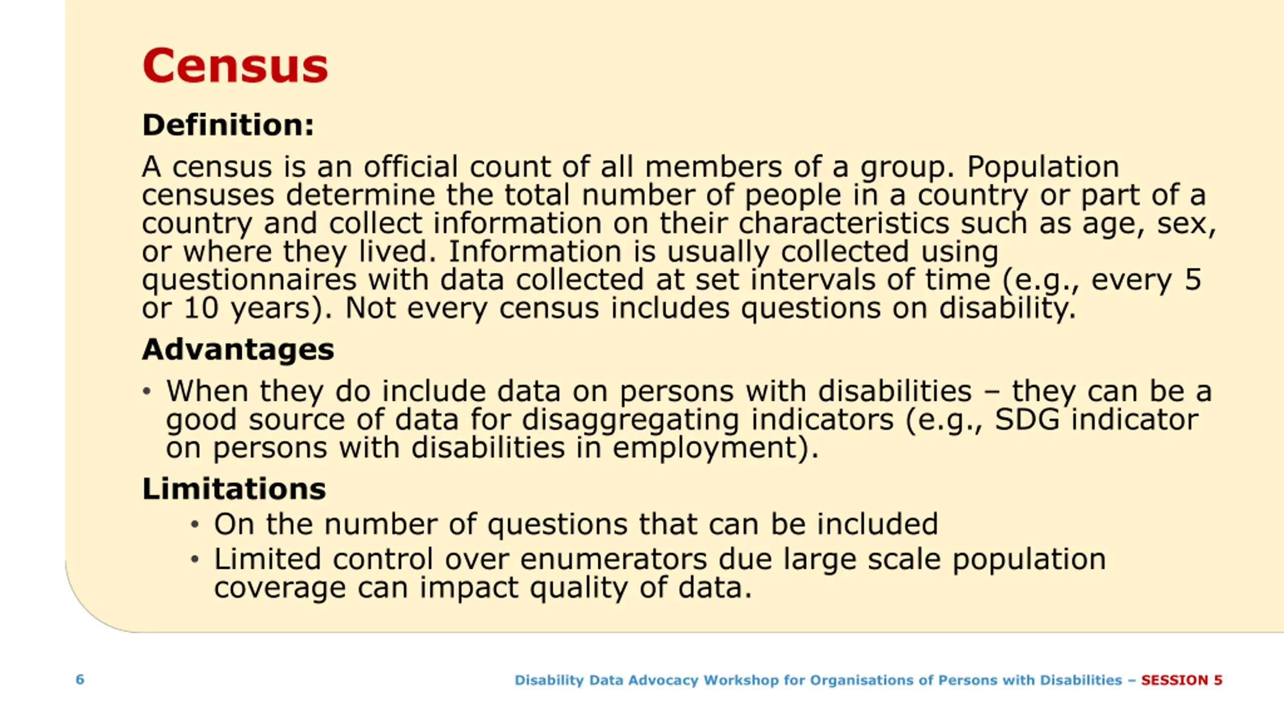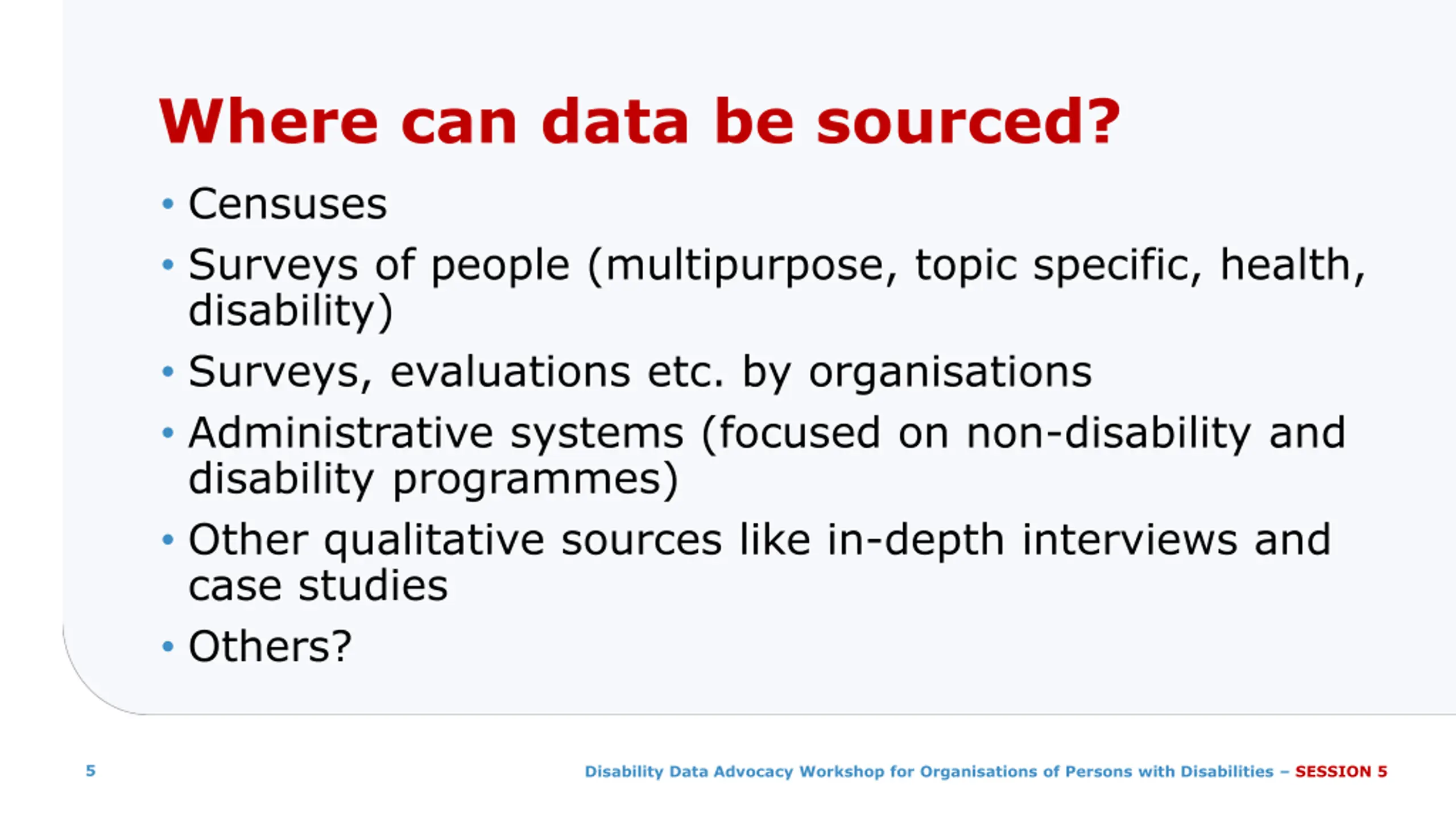 Sources of data 4 Disability Data Advocacy Workshop for Organisations of Persons with Disabilities SESSION 5