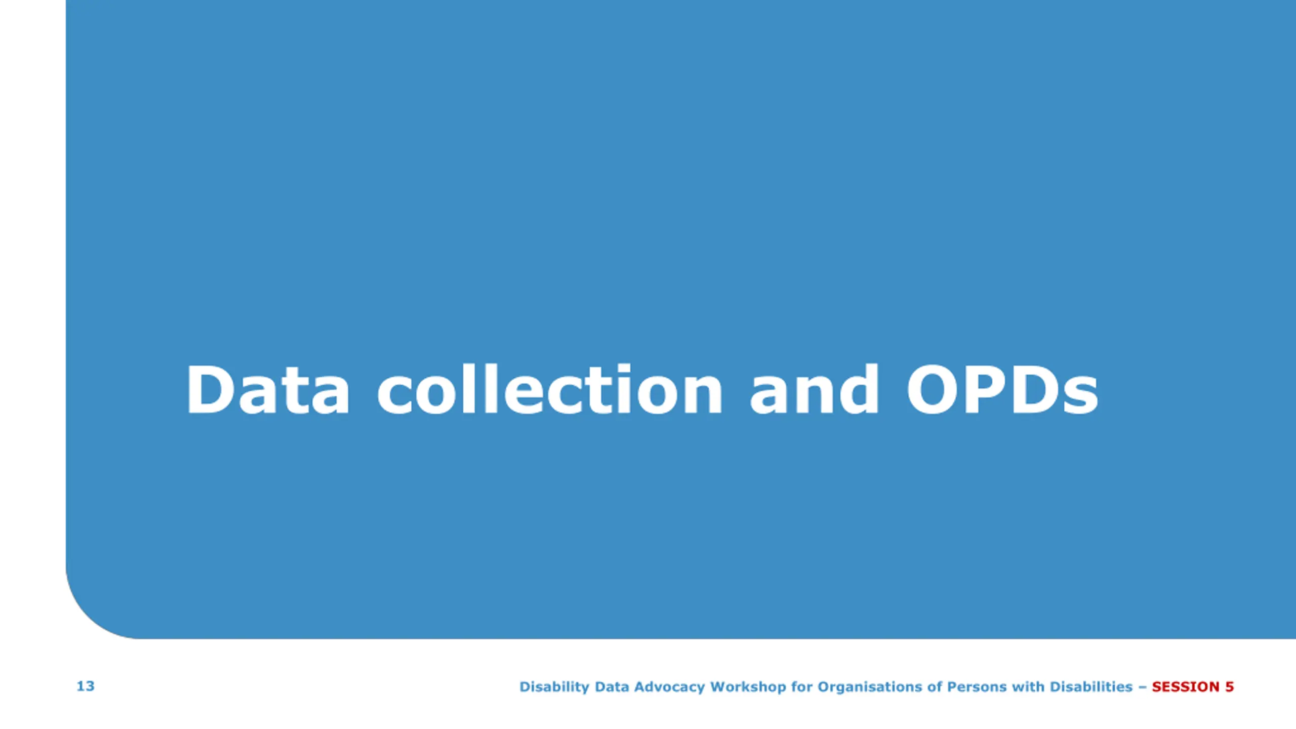 Data collection and OPDs 13 Disability Data Advocacy Workshop for Organisations of Persons with Disabilities SESSION 5