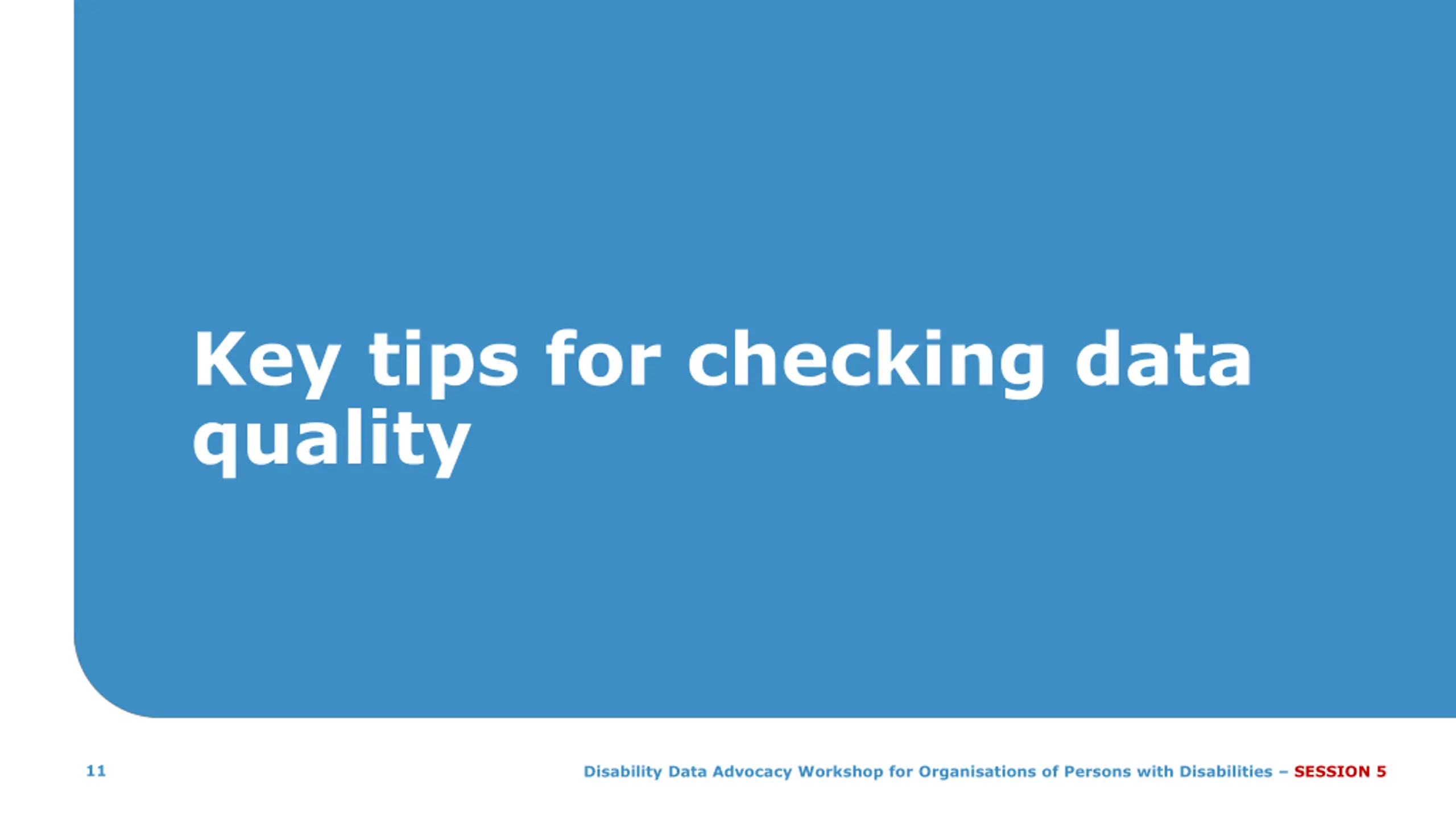 Key tips for checking data quality 11 Disability Data Advocacy Workshop for Organisations of Persons with Disabilities SESSION 5