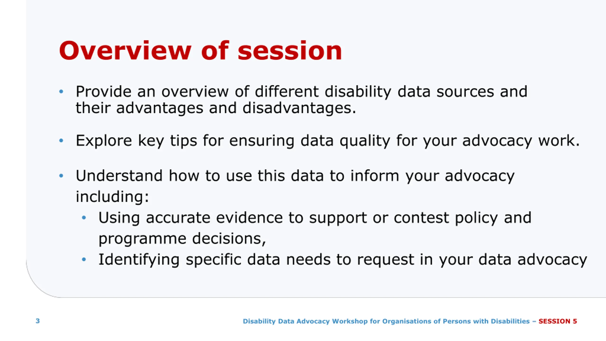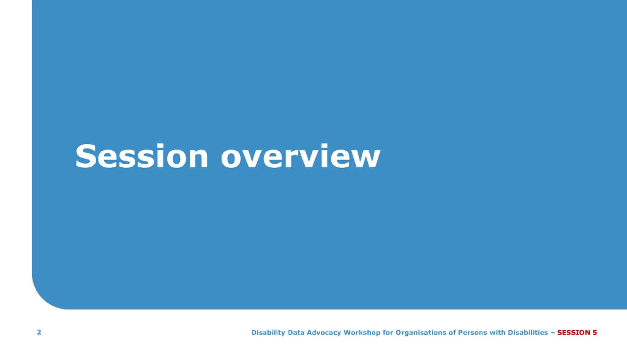 Session overview 2 Disability Data Advocacy Workshop for Organisations of Persons with Disabilities SESSION 5