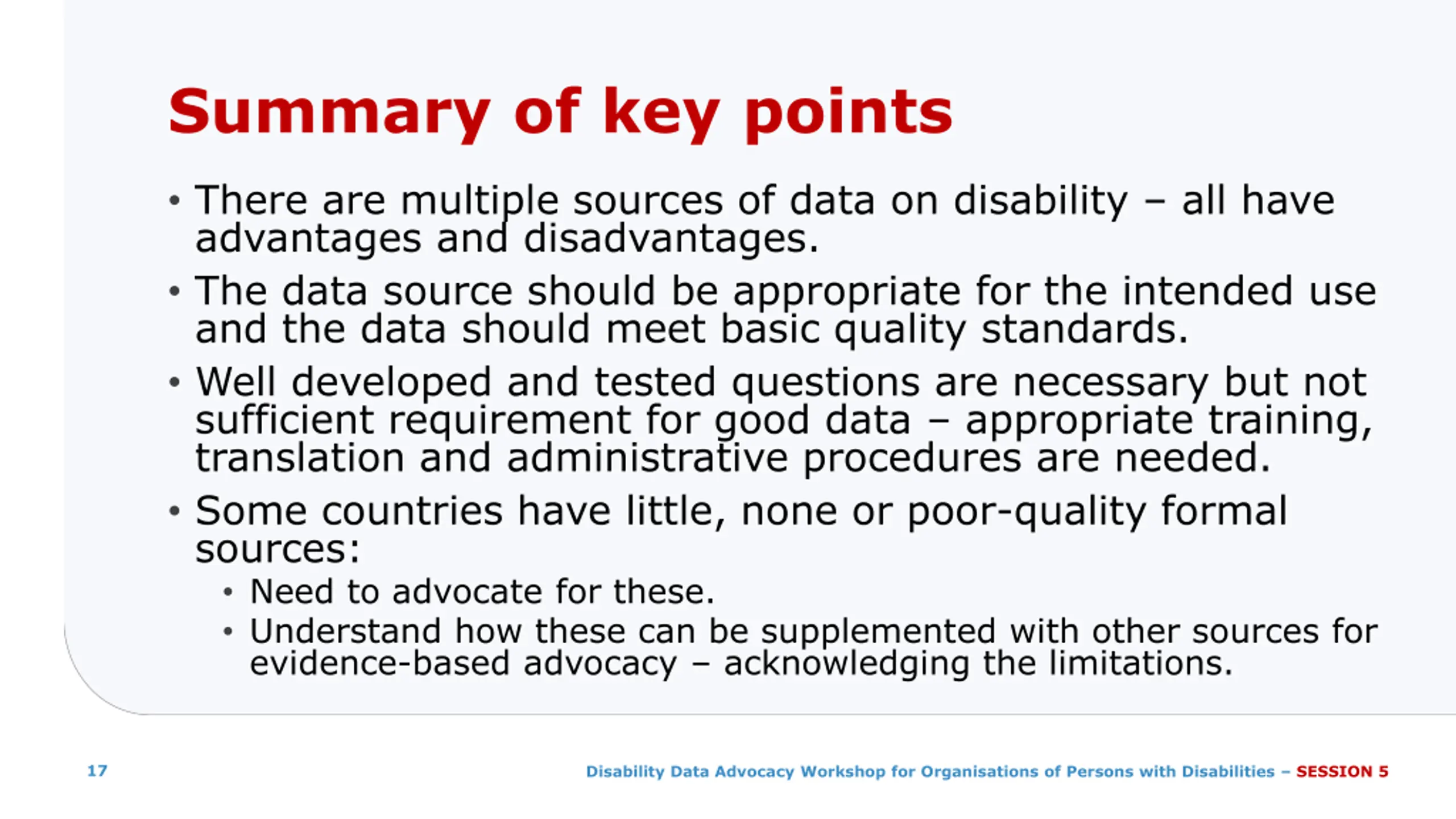 Session 5 Disability data sources, quality, and the role of OPDs Disability Data Advocacy Workshop for Organisations of Persons with Disabilities
