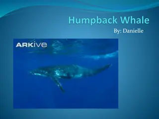 Humpback whales are magnificent creatures with about 20,000 in the oceans worldwide. They can grow up to 50 feet long and weigh 48 tons, feeding on krill and fish. These whales produce incredible sounds, and male humpbacks are known for their songs. Calves are born around 13 feet long and consume 100 pounds of milk daily. Learn more about these amazing animals in this insightful presentation.