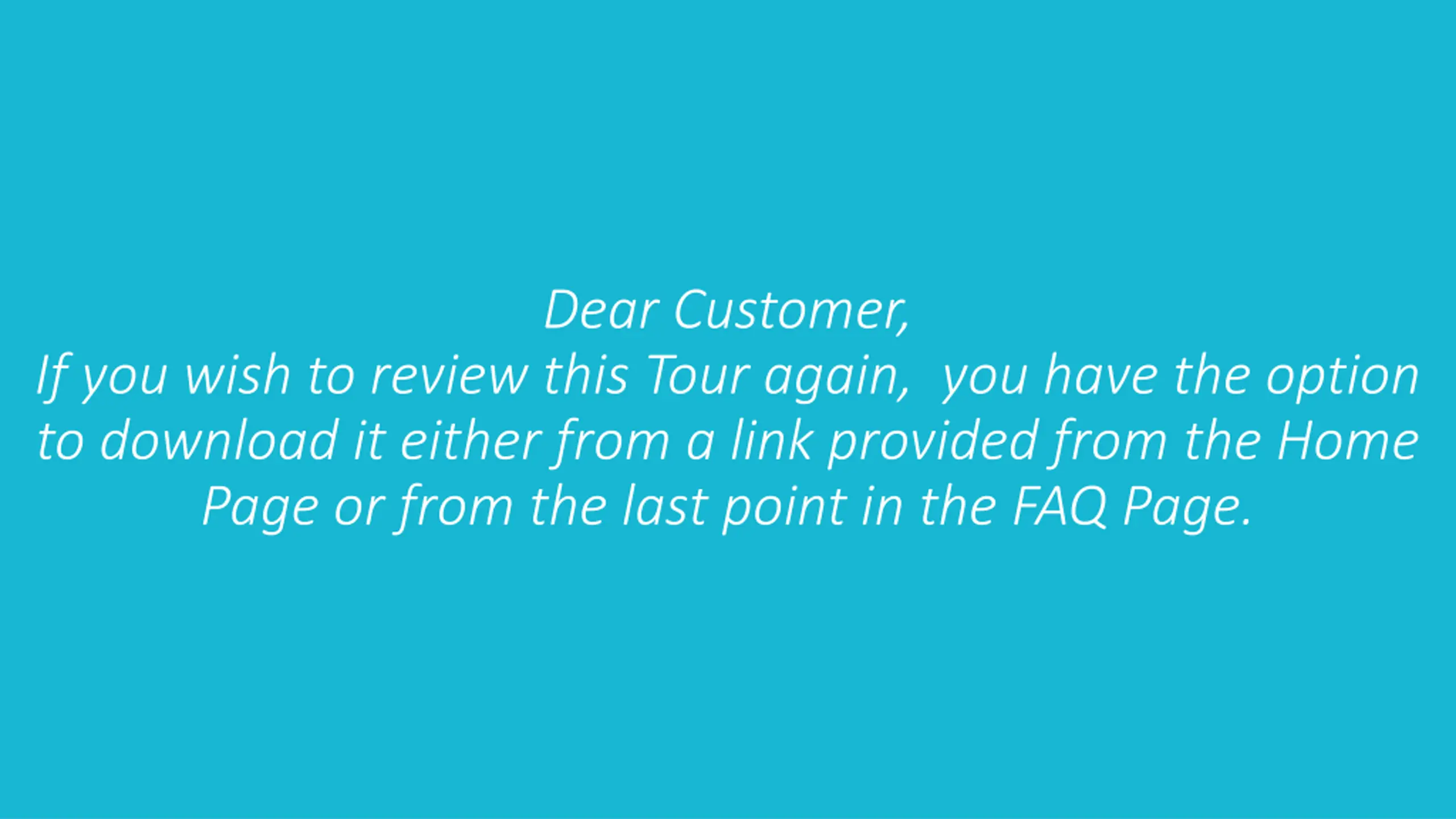 Dear Customer, If you wish to review this Tour again, you have the option to download it either from a link provided from the Home Page or from the last point in the FAQ Page. Personal - Individual Use