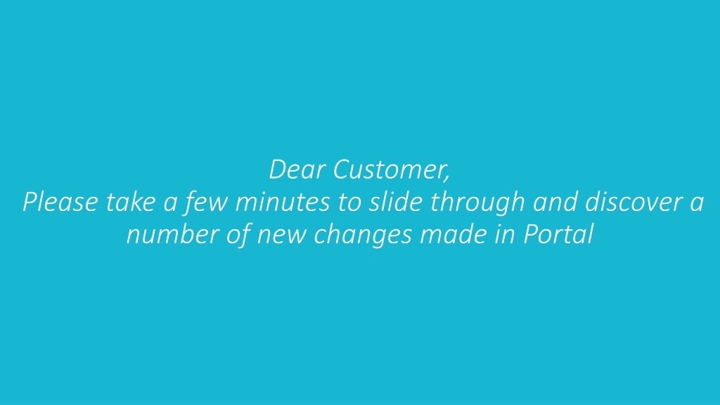 Dear Customer, Please take a few minutes to slide through and discover a number of new changes made in Portal Personal - Individual Use