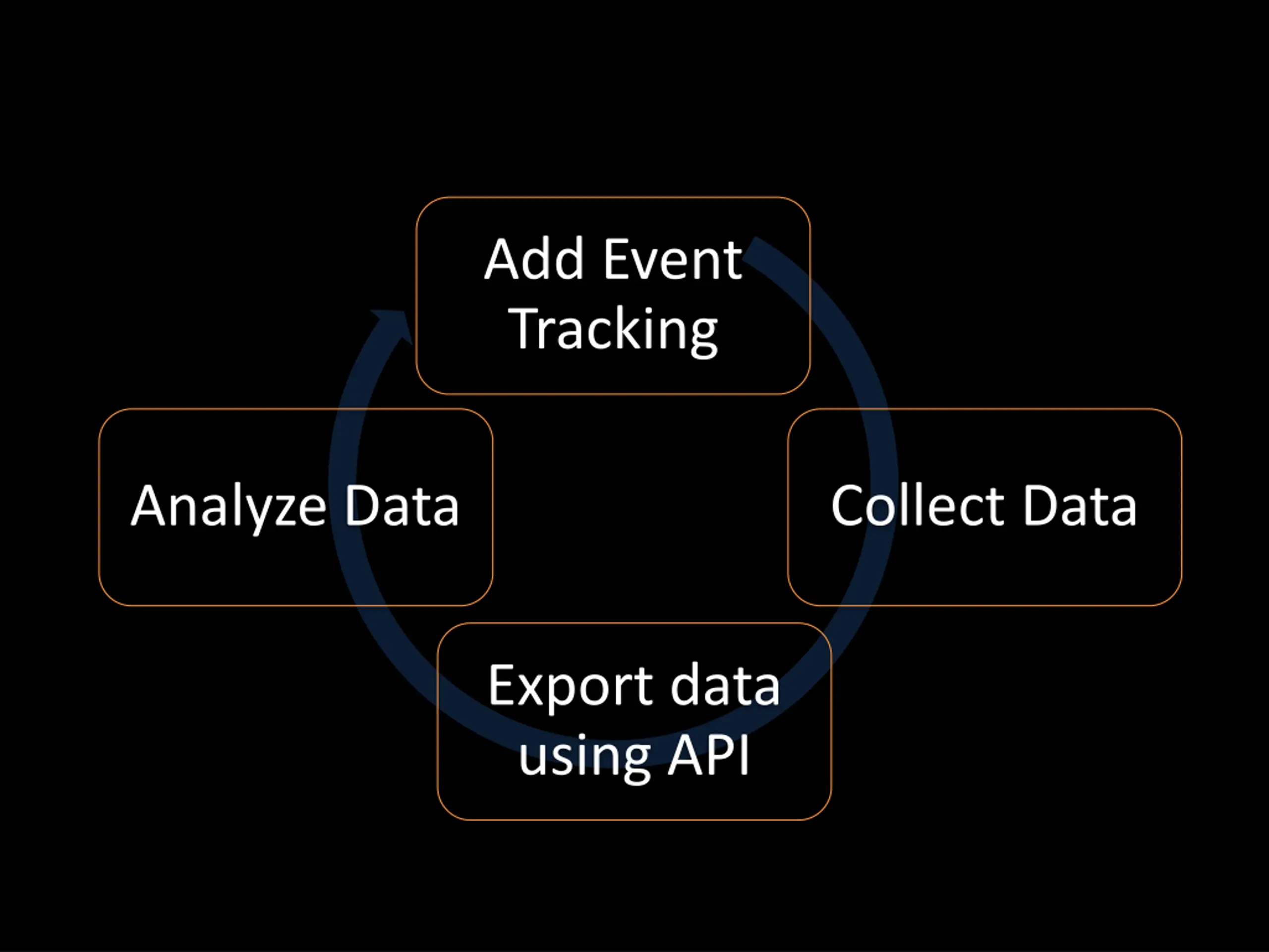 Add Event Tracking Analyze Data Collect Data Export data using API