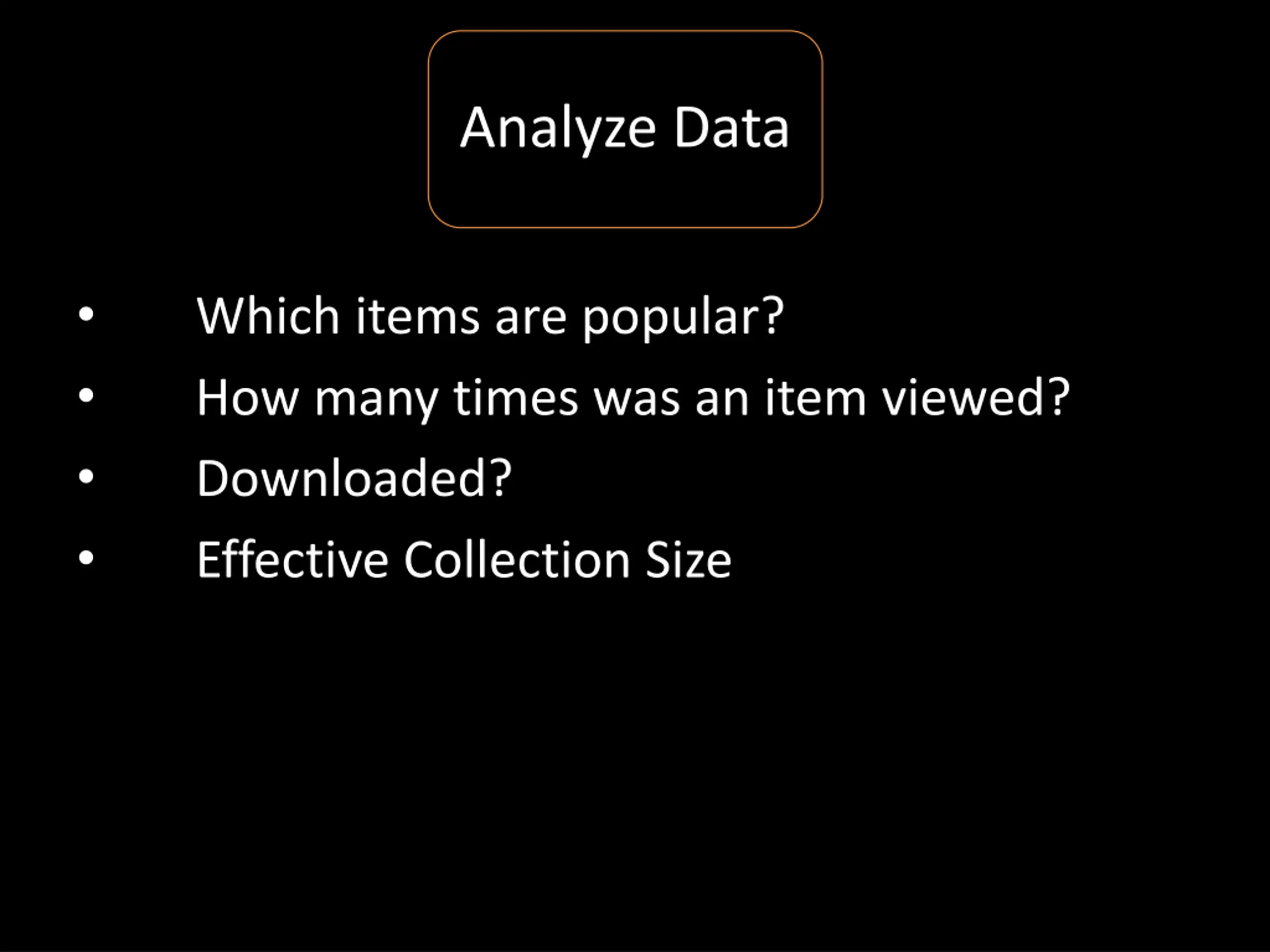 Analyze Data Which items are popular? How many times was an item viewed? Downloaded? Effective Collection Size