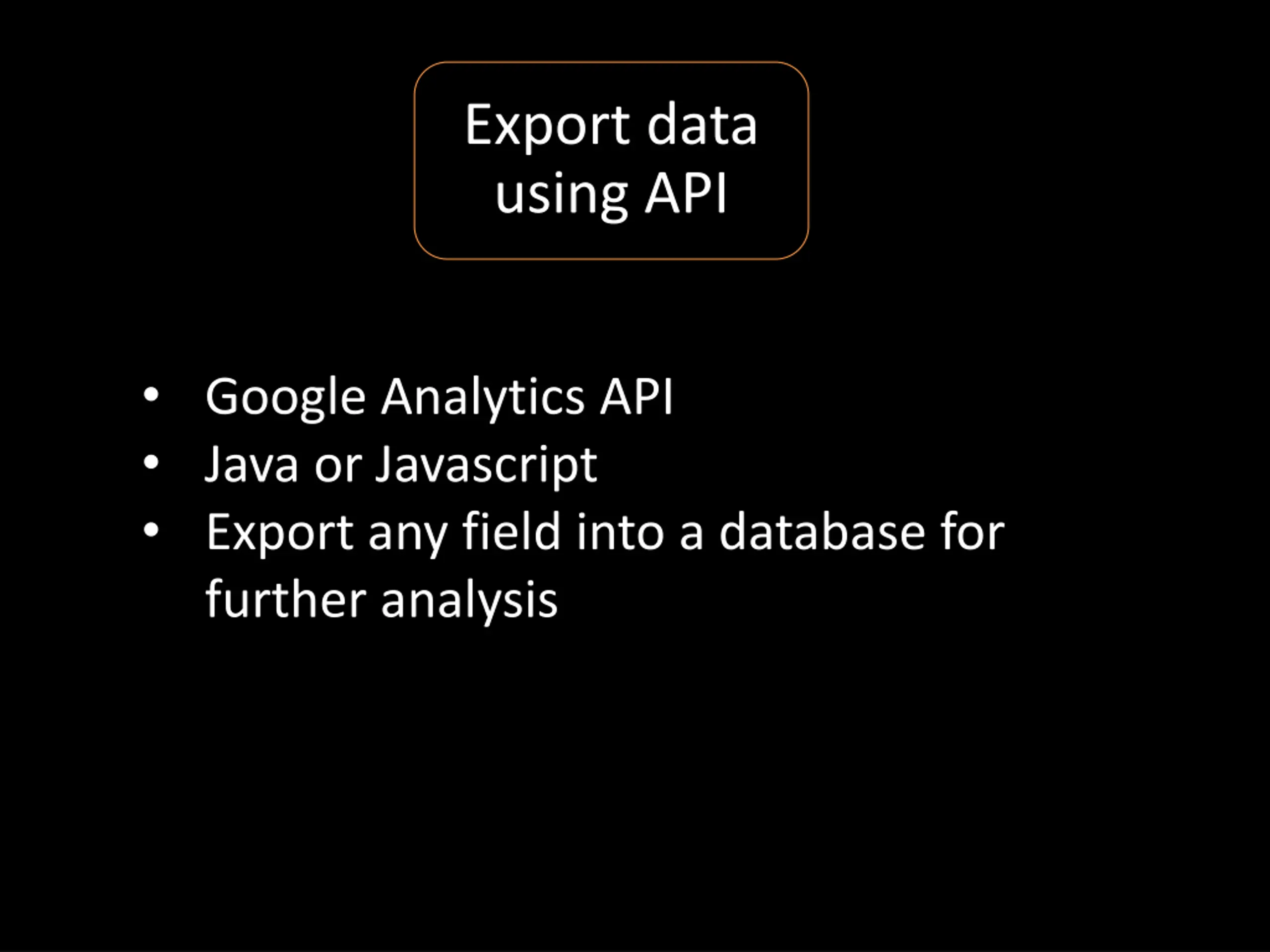 Export data using API Google Analytics API Java or Javascript Export any field into a database for further analysis
