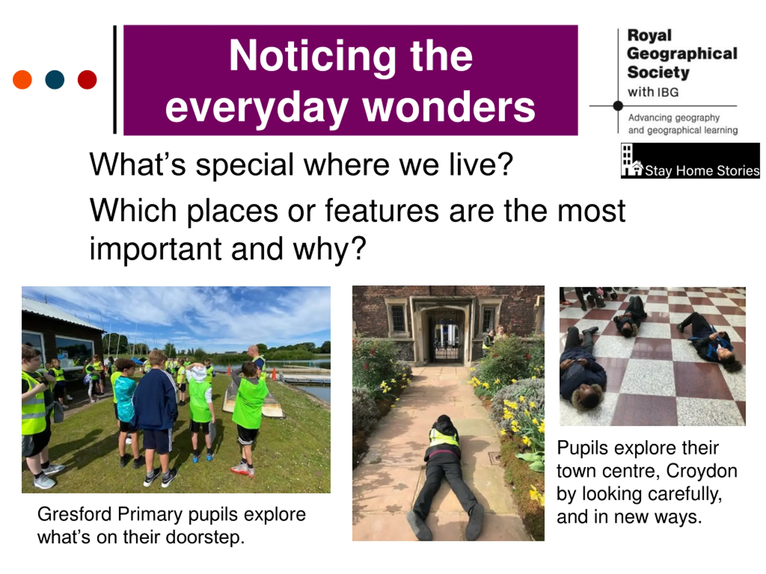 Noticing the everyday wonders What s special where we live? Which places or features are the most important and why? Pupils explore their town centre, Croydon by looking carefully, and in new ways. Gresford Primary pupils explore what s on their doorstep.