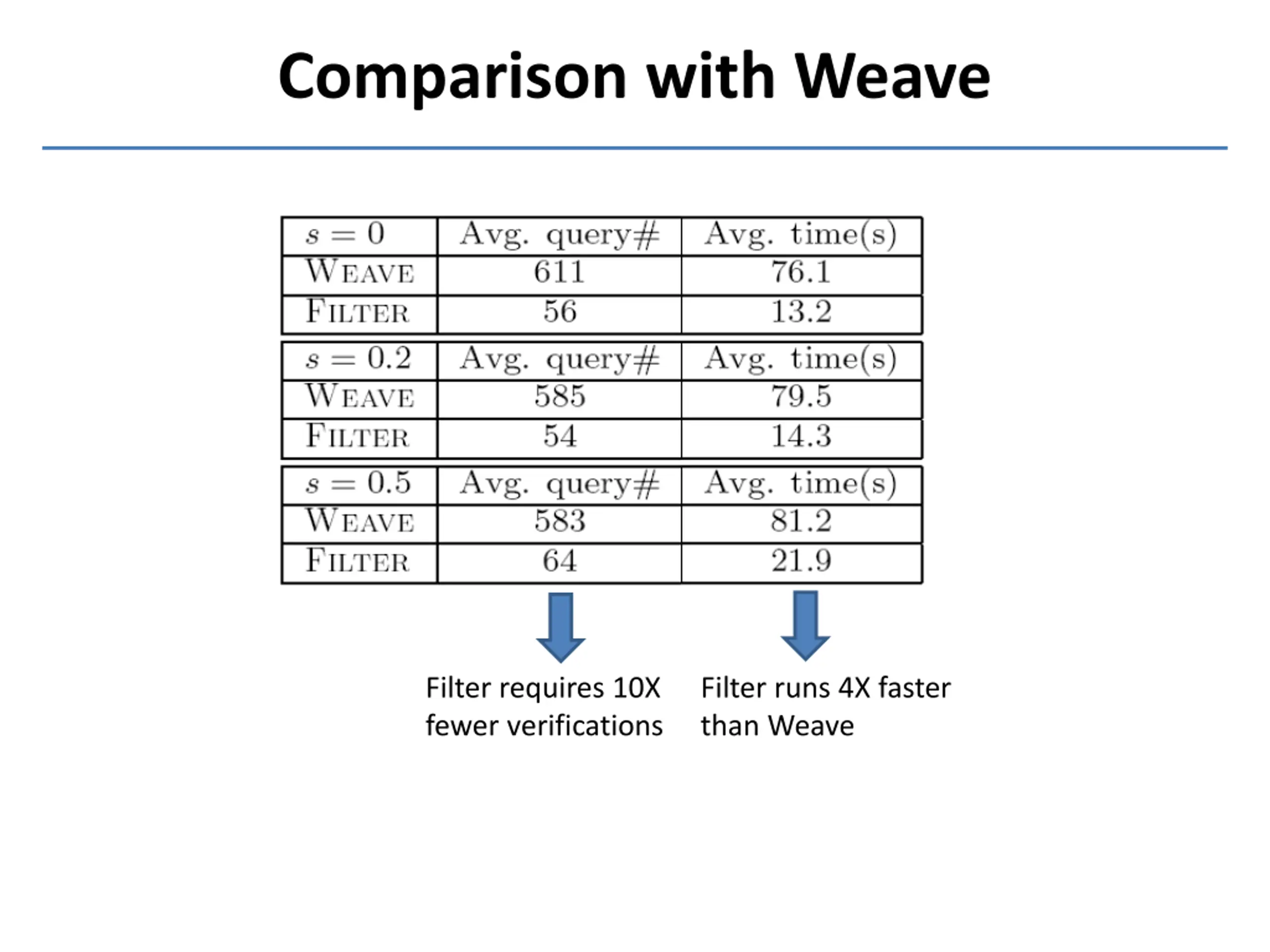 Comparison with Weave Filter requires 10X fewer verifications Filter runs 4X faster than Weave