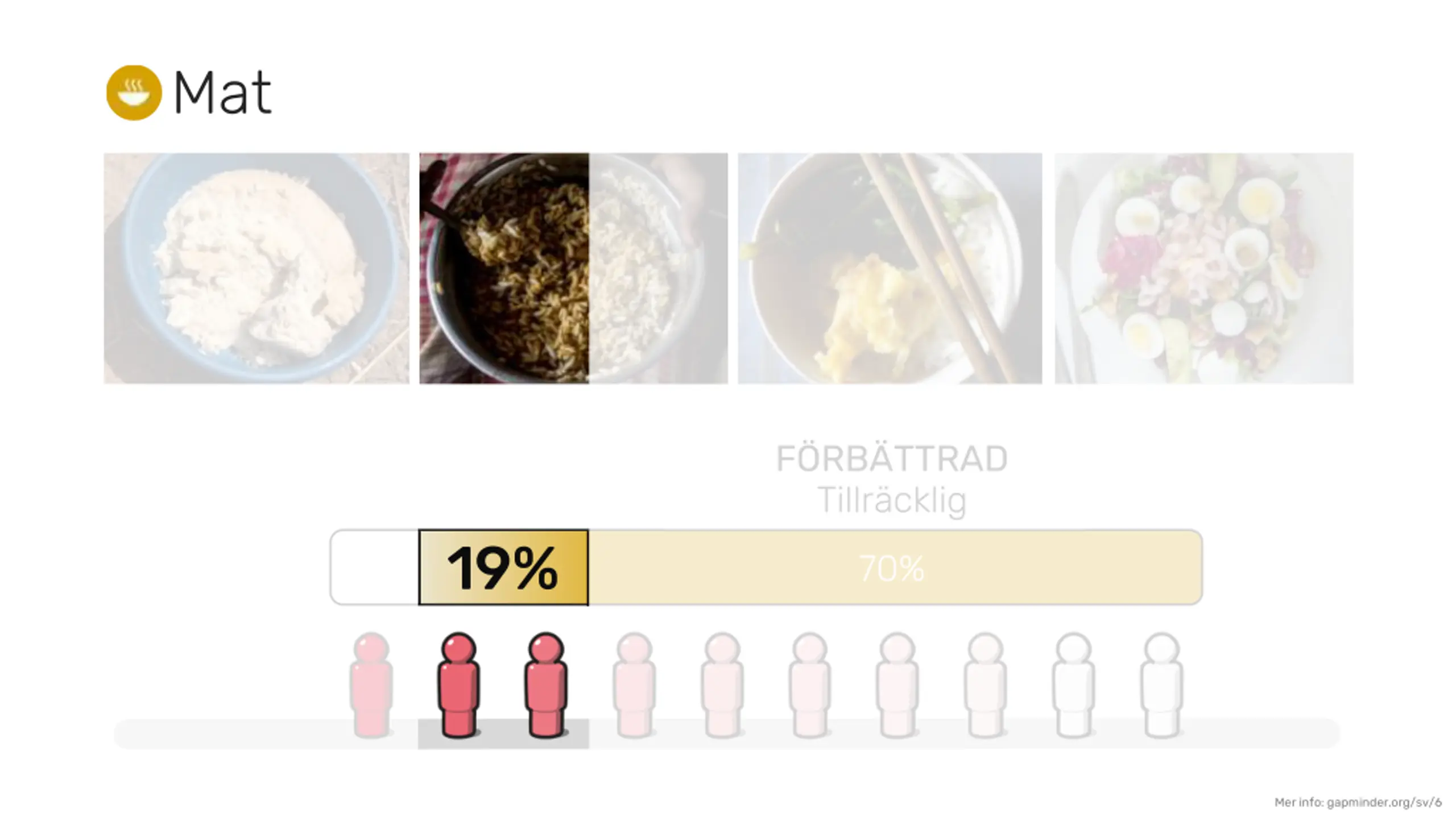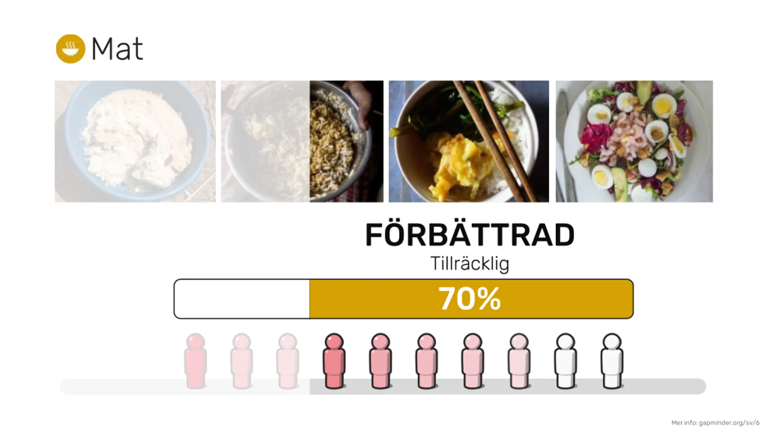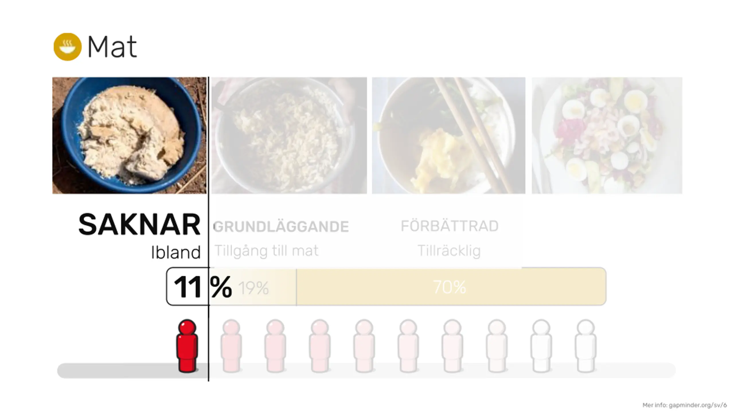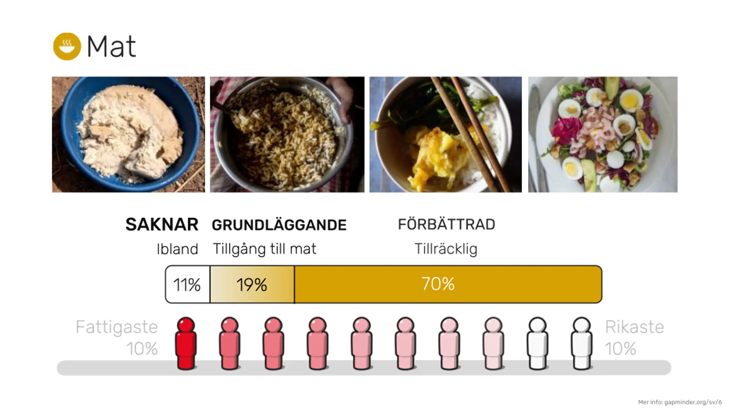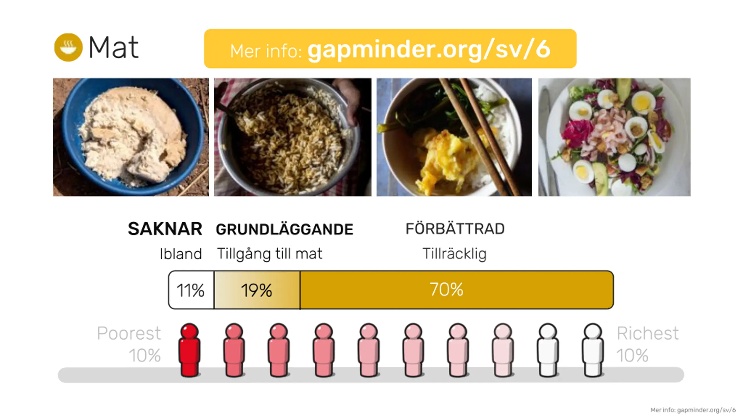 Mat SAKNAR Ibland F RB TTRAD GRUNDL GGANDE Tillg ng till mat Tillr cklig 70% 11% 19% Fattigaste Rikaste 10% 10% Mer info: gapminder.org/sv/6
