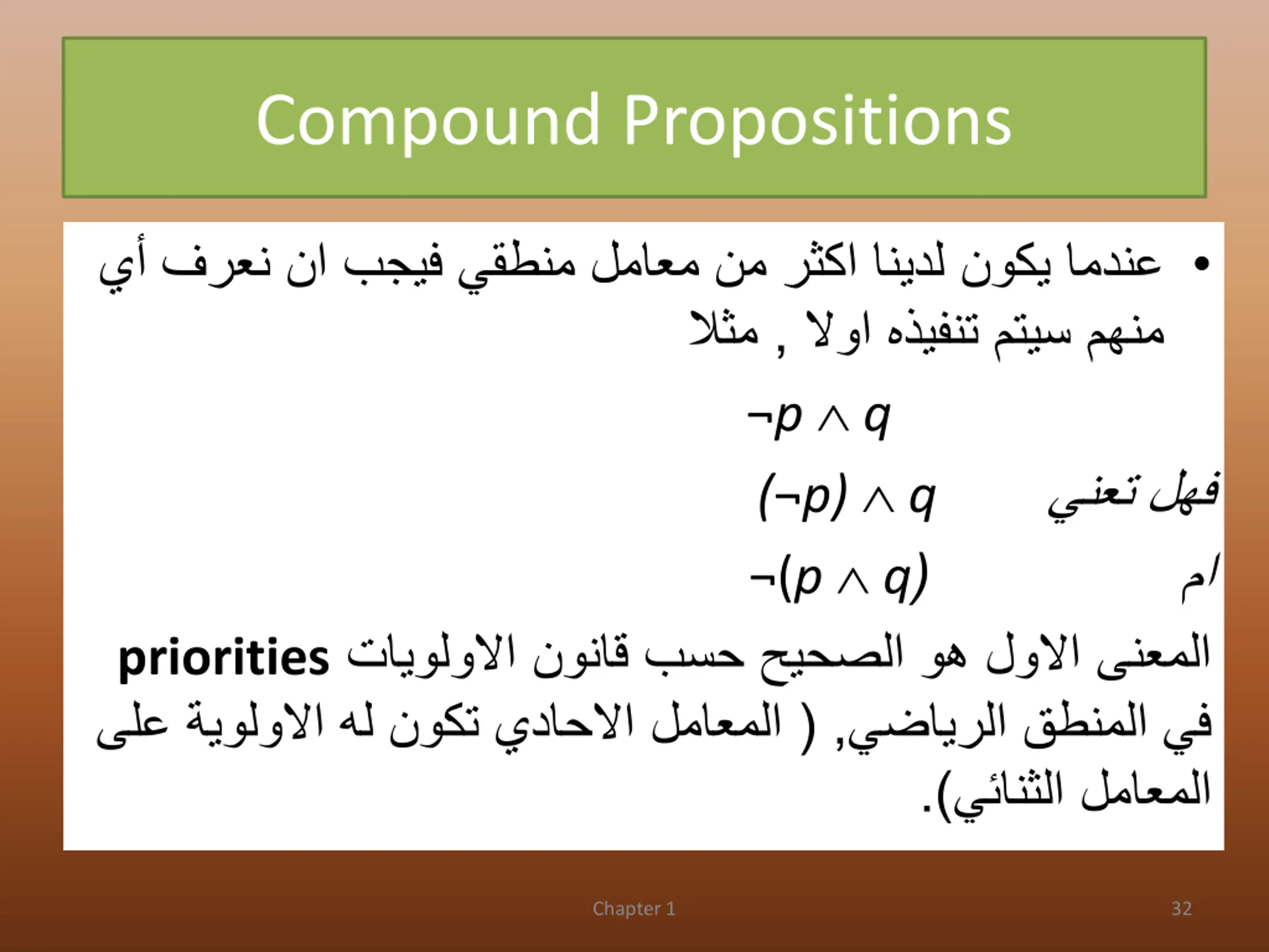 Compound Propositions , p q ( p) q ( (p q priorities ( , .) Chapter 1 32