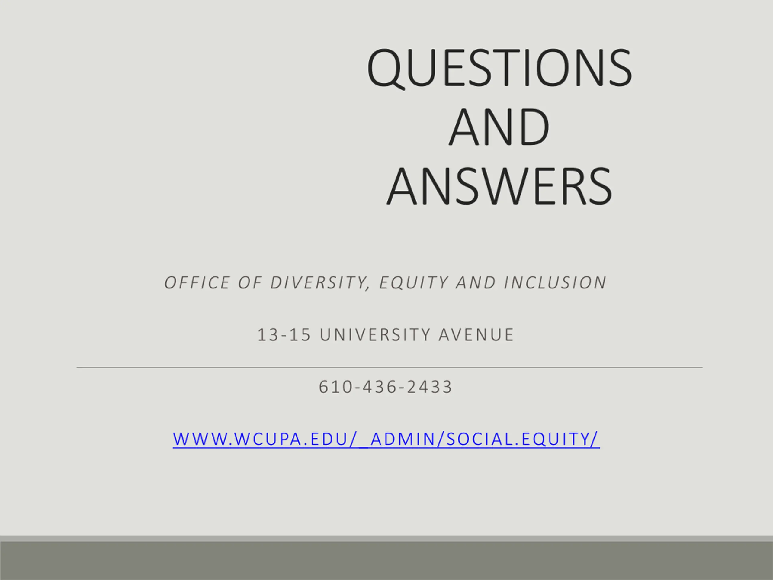 QUESTIONS AND ANSWERS OFFICE OF DIVERSITY, EQUITY AND INCLUSION 13-15 UNIVERSITY AVENUE 610-436-2433 WWW.WCUPA.EDU/_ADMIN/SOCIAL.EQUITY/