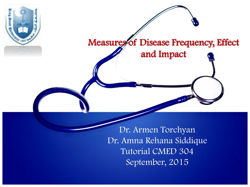 Measures of Disease Frequency, Effect Measures of Disease Frequency, Effect and Impact and Impact Dr. Armen Torchyan Dr. Amna Rehana Siddique Tutorial CMED 304 September, 2015