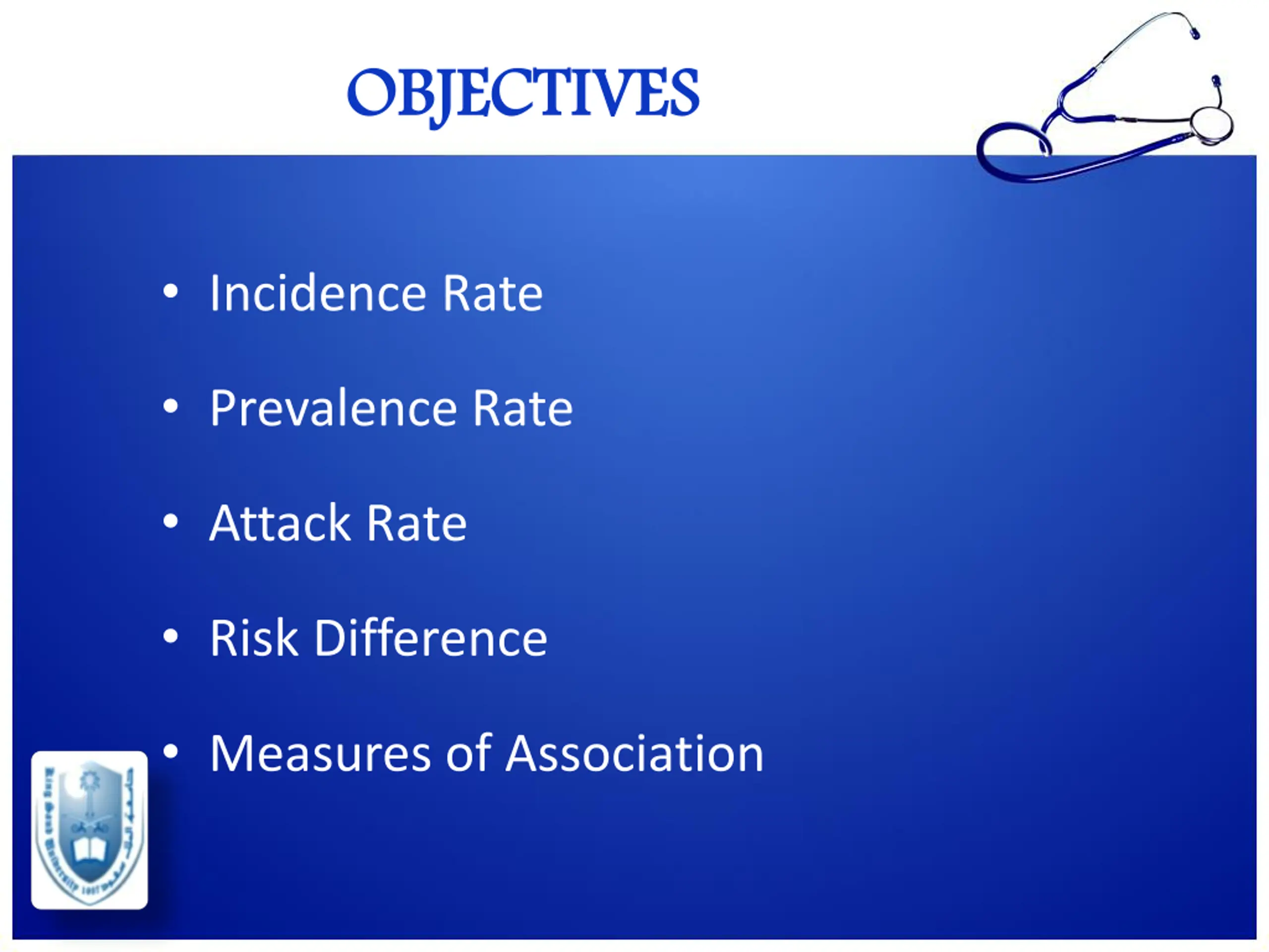 OBJECTIVES OBJECTIVES Incidence Rate Prevalence Rate Attack Rate Risk Difference Measures of Association