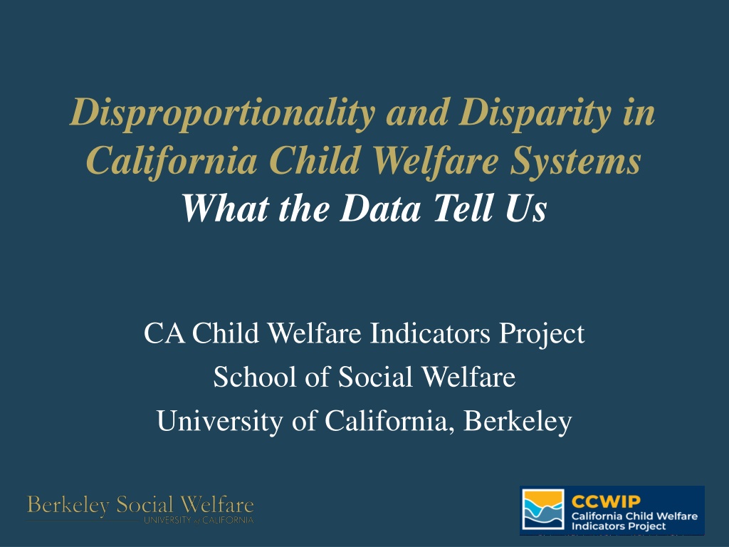Disproportionality and Disparity in California Child Welfare Systems What the Data Tell Us CA Child Welfare Indicators Project School of Social Welfare University of California, Berkeley 1