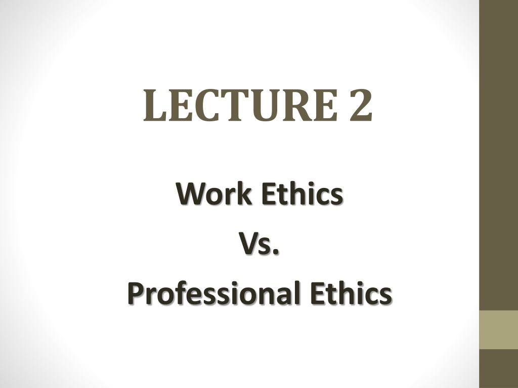 LECTURE 2 Work Ethics Vs. Professional Ethics