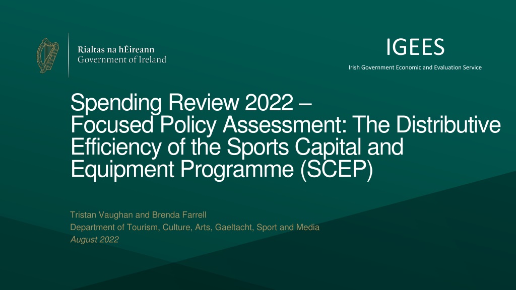 IGEES Irish Government Economic and Evaluation Service Spending Review 2022 Focused Policy Assessment: The Distributive Efficiency of the Sports Capital and Equipment Programme (SCEP) Tristan Vaughan and Brenda Farrell Department of Tourism, Culture, Arts, Gaeltacht, Sport and Media August 2022