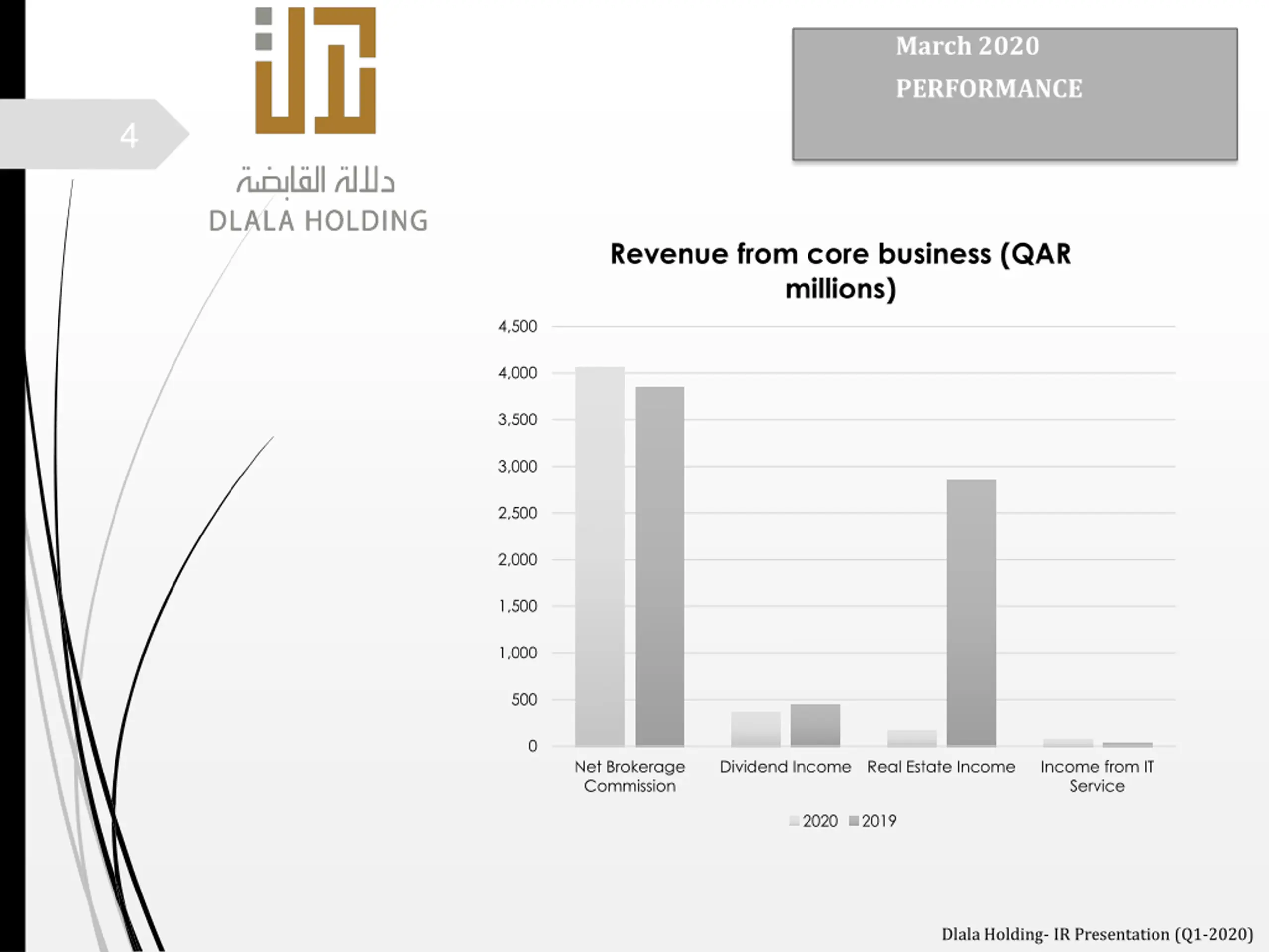 March 2020 PERFORMANCE 4 Revenue from core business (QAR millions) 4,500 4,000 3,500 3,000 2,500 2,000 1,500 1,000 500 0 Net Brokerage Commission Dividend Income Real Estate Income Income from IT Service 2020 2019 Dlala Holding- IR Presentation (Q1-2020)