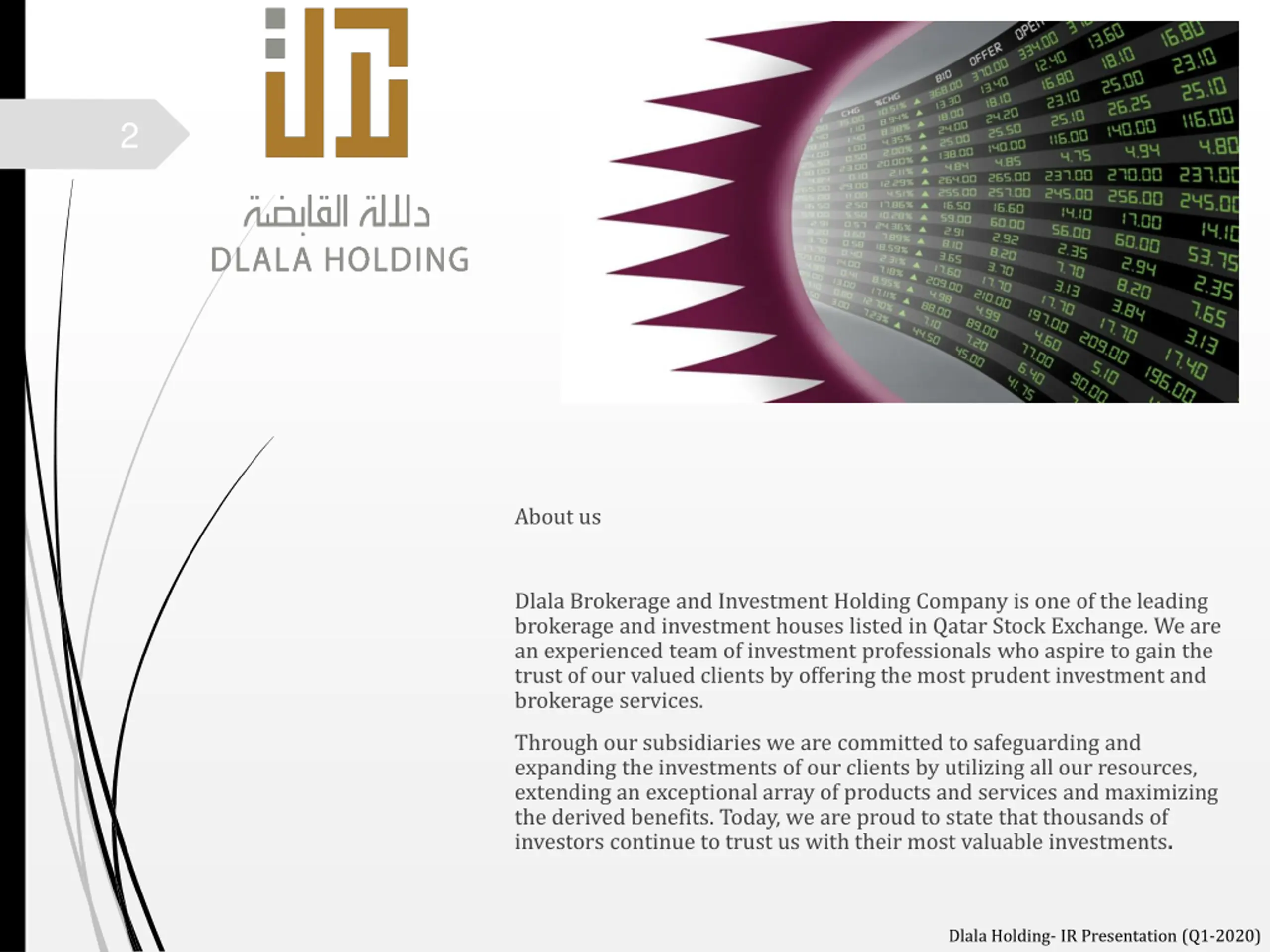 2 About us Dlala Brokerage and Investment Holding Company is one of the leading brokerage and investment houses listed in Qatar Stock Exchange. We are an experienced team of investment professionals who aspire to gain the trust of our valued clients by offering the most prudent investment and brokerage services. Through our subsidiaries we are committed to safeguarding and expanding the investments of our clients by utilizing all our resources, extending an exceptional array of products and services and maximizing the derived benefits. Today, we are proud to state that thousands of investors continue to trust us with their most valuable investments. Dlala Holding- IR Presentation (Q1-2020)
