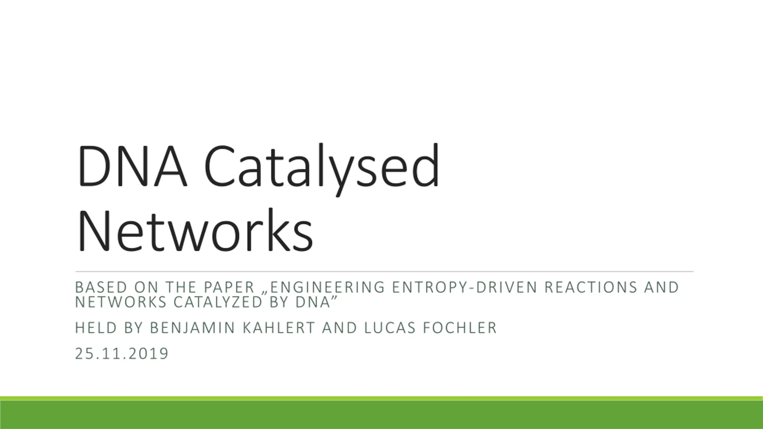 DNA Catalysed Networks BASED ON THE PAPER ENGINEERING ENTROPY-DRIVEN REACTIONS AND NETWORKS CATALYZED BY DNA HELD BY BENJAMIN KAHLERT AND LUCAS FOCHLER 25.11.2019