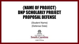 SOME EXAMPLES OF DNP PROJECTS Remember that the scope of project is focused and limited in Remember that the scope of project is focused and limited in order to get it finished in 4 semesters order to get it finished in 4 semesters Some possibilities include Some possibilities include Initial data collection on a topic to determine feasibility Initial data collection on a topic to determine feasibility (pilot project) (pilot project) Quality Assurance Projects Quality Assurance Projects Developing or evaluating a new model of care Developing or evaluating a new model of care Practice change initiatives Practice change initiatives Involvement in a larger team Involvement in a larger team- -based initiative based initiative