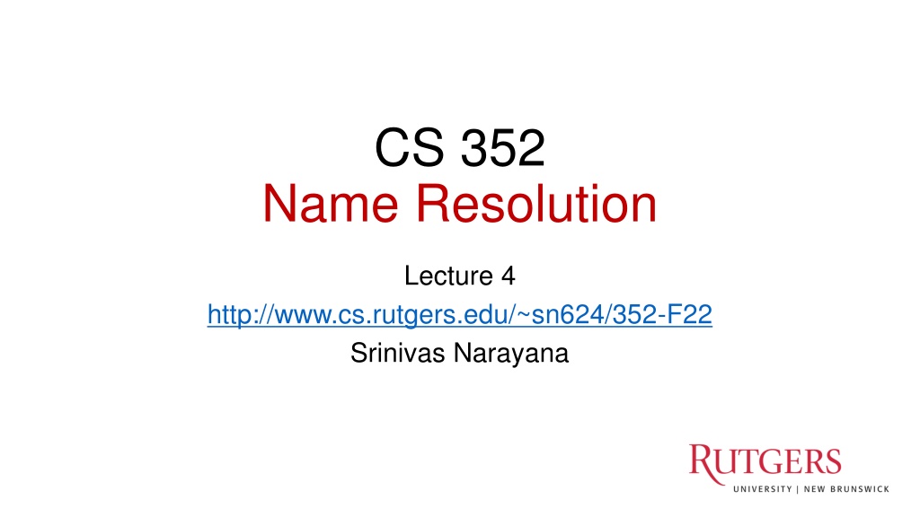 CS 352 Name Resolution Lecture 4 http://www.cs.rutgers.edu/~sn624/352-F22 Srinivas Narayana 1
