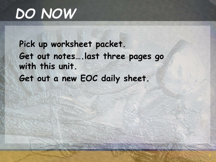 DO NOW Pick up worksheet packet. Get out notes .last three pages go with this unit. Get out a new EOC daily sheet. 1