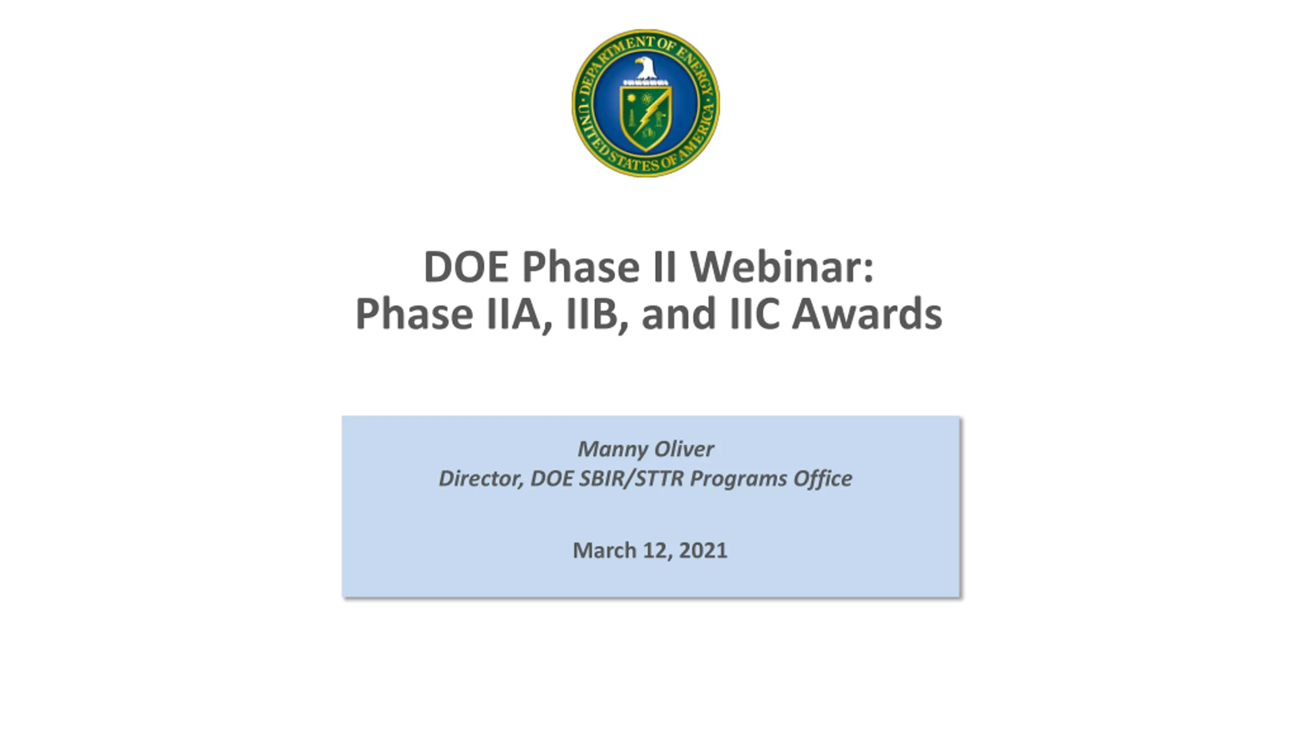 DOE Phase II Webinar: Phase IIA, IIB, and IIC Awards Manny Oliver Director, DOE SBIR/STTR Programs Office March 12, 2021