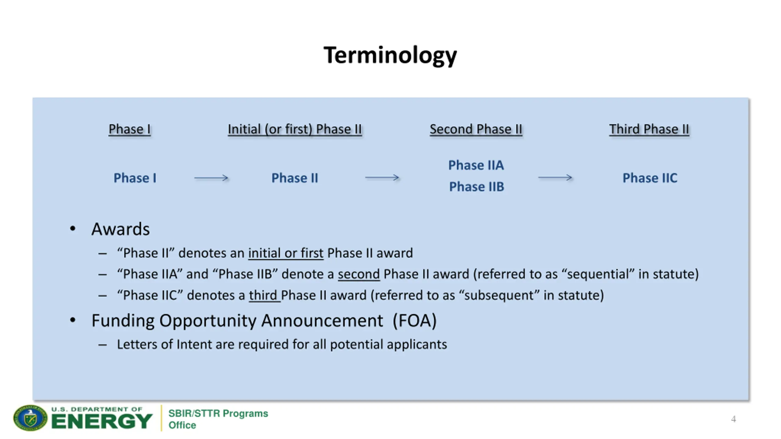 Webinar Outline Second Phase II: Phase IIA & IIB SBIR/STTR Reauthorization Act (December 31, 2011) permitted agencies to issue second Phase II awards DOE implemented these awards in FY 2014 Third Phase II (SBIR Only): Phase IIC FY 2019 National Defense Authorization Act (August 13, 2018) required agencies to issue third Phase II awards, if they issue second Phase II awards DOE began implementing these awards beginning with the FY 2019 Phase II Release 2 FOA SBIR/STTR Programs Office 3