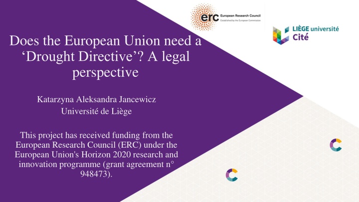 Does the European Union need a Drought Directive ? A legal perspective Katarzyna Aleksandra Jancewicz Universit de Li ge This project has received funding from the European Research Council (ERC) under the European Union's Horizon 2020 research and innovation programme (grant agreement n 948473).