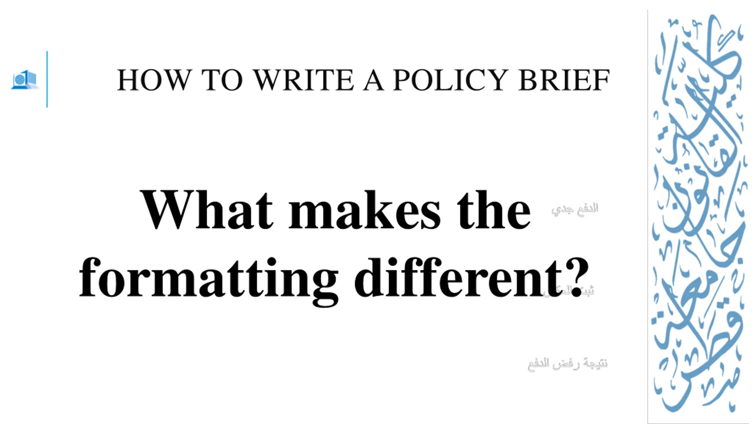 HOW TO WRITE A POLICY BRIEF What makes the formatting different?
