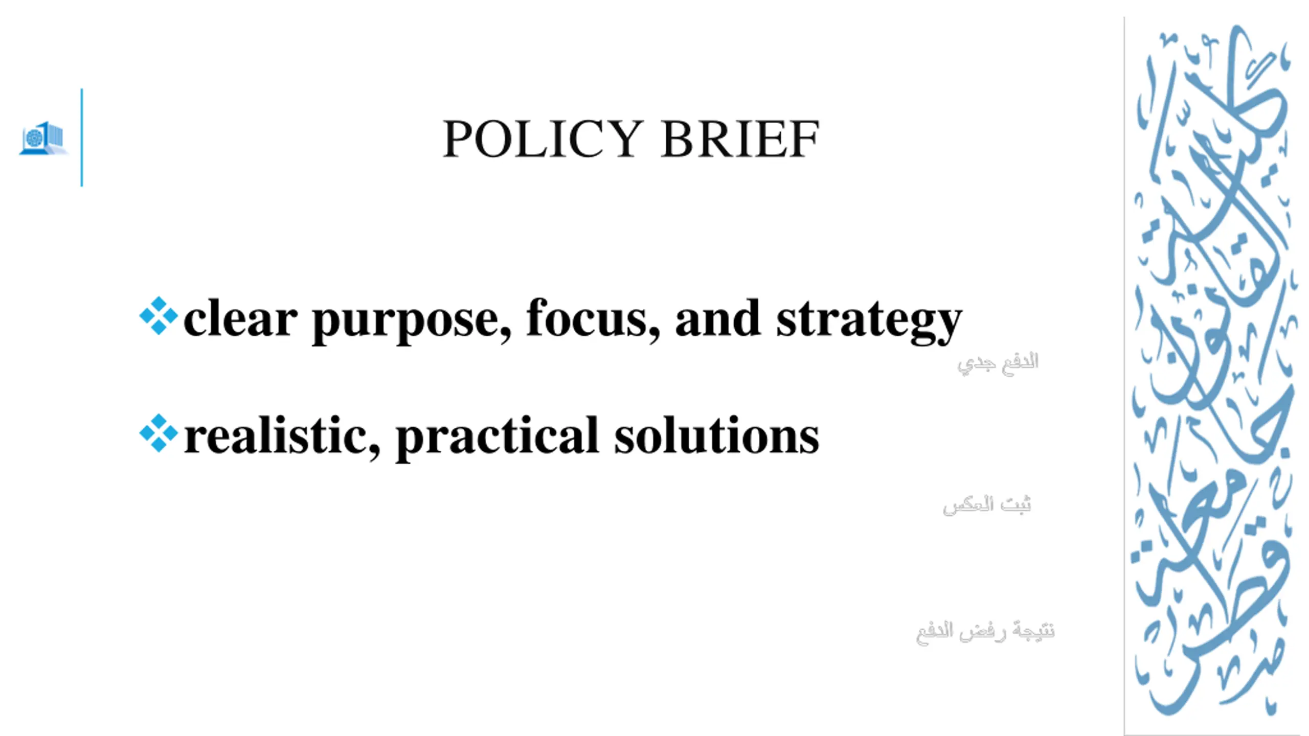 POLICY BRIEF clear purpose, focus, and strategy realistic, practical solutions