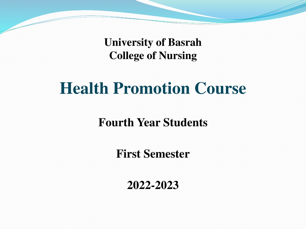 University of Basrah College of Nursing Health Promotion Course Fourth Year Students First Semester 2022-2023