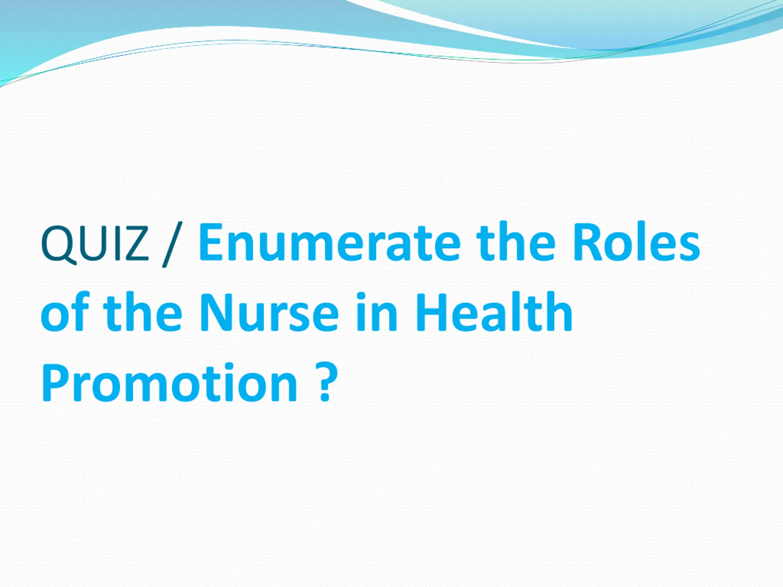 QUIZ / Enumerate the Roles of the Nurse in Health Promotion ?