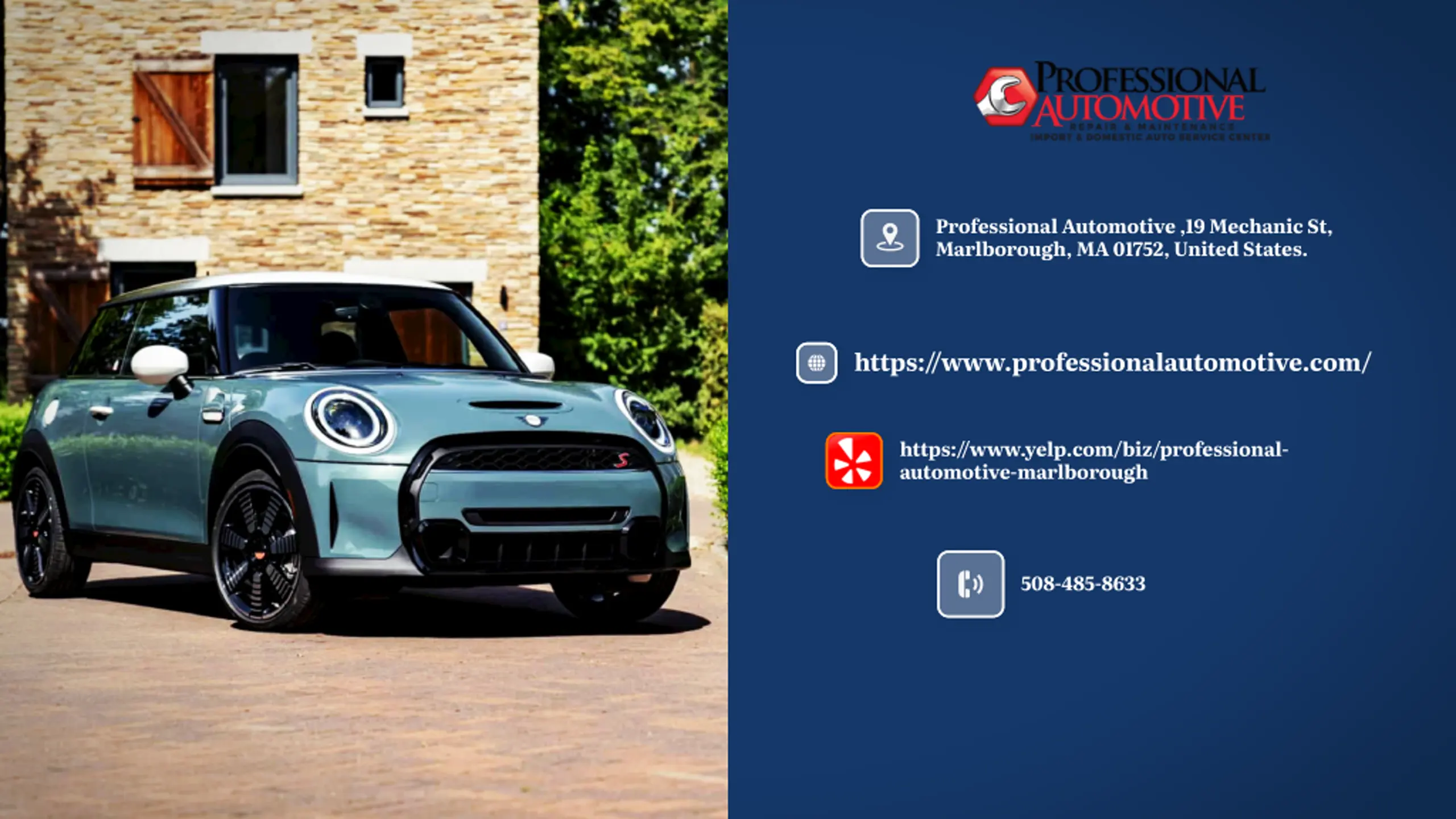 Professional Automotive ,19 Mechanic St, Marlborough, MA 01752, United States. https:/ /www.professionalautomotive.com/ https:/ /www.yelp.com/biz/professional- automotive-marlborough 508-485-8633